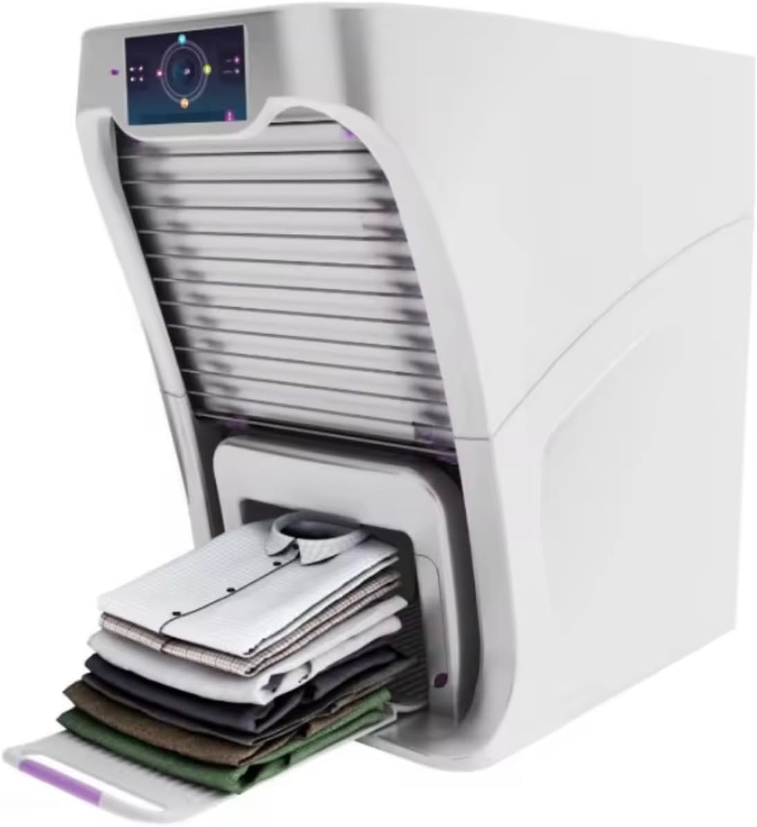 Say goodbye to wrinkled piles and reclaim your valuable time. Its sleek, compact design fits seamlessly into any laundry room, while the intuitive interface makes professional folding accessible to everyone. Experience the ultimate "laundry throuple" by pairing FoldiMate with your washer and dryer. Transform your routine into a flawless, automated experience—because you deserve a wardrobe that’s always shelf-ready.