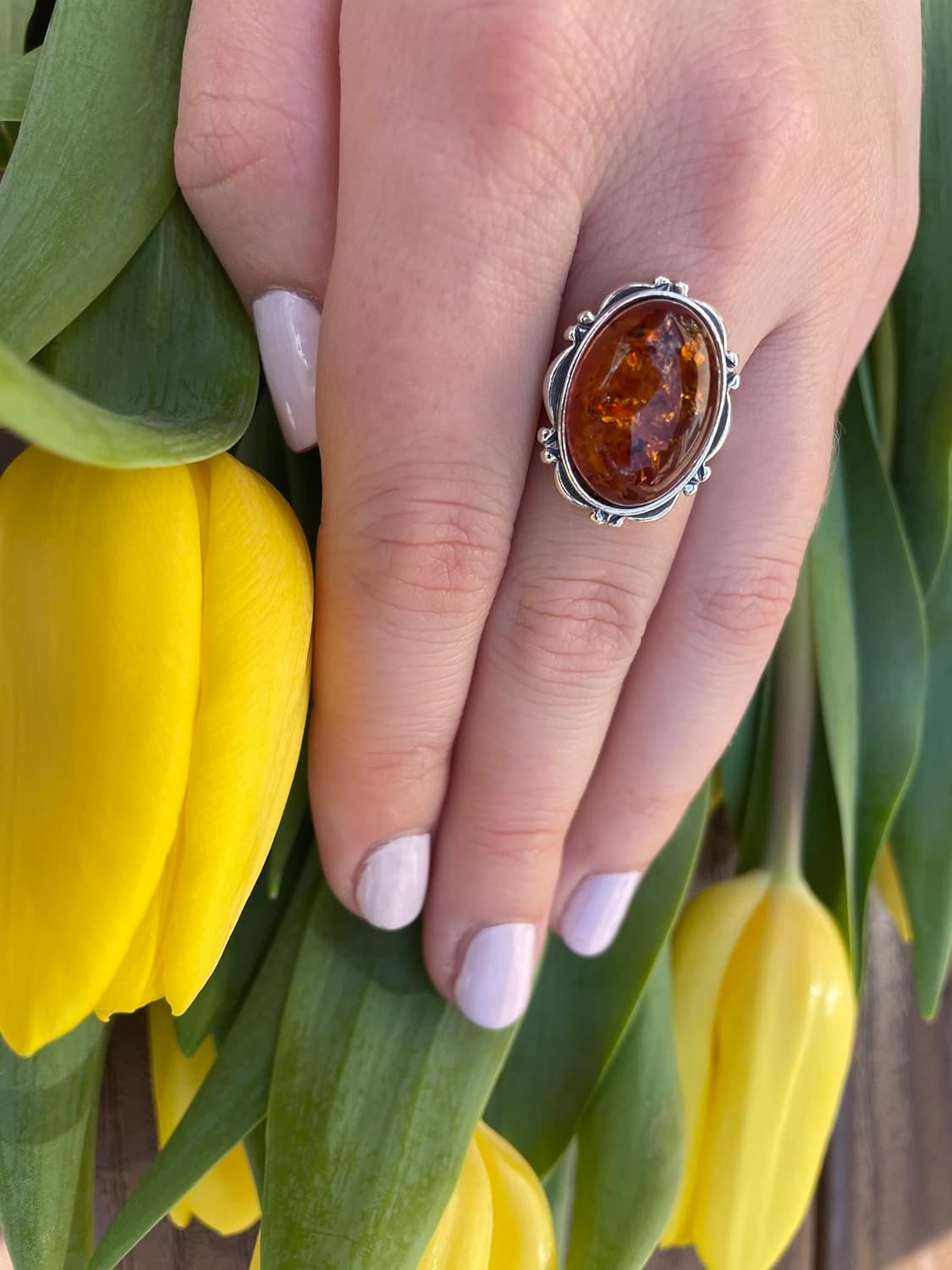 Vintage Natural Baltic Amber Ring. Honey Baltic Amber Ring. Looking for the perfect gift for her? Look no further than our stunning Baltic Amber Ring! Amber jewelry has a rich history dating back over 10,000 years, with prehistoric people adorning themselves with amber ornaments. Today, Baltic Amber is considered the most rare and precious of all ambers, known for its natural healing properties and ability to promote harmony and well-being. Our handcrafted Baltic Amber Ring is made with the purest, highest-quality amber and 925 sterling silver, ensuring both durability and beauty. Whether you're looking for a special gift for a loved one or simply want to treat yourself, our Baltic Amber Ring is sure to impress. Order now and give the gift of timeless beauty and natural healing.