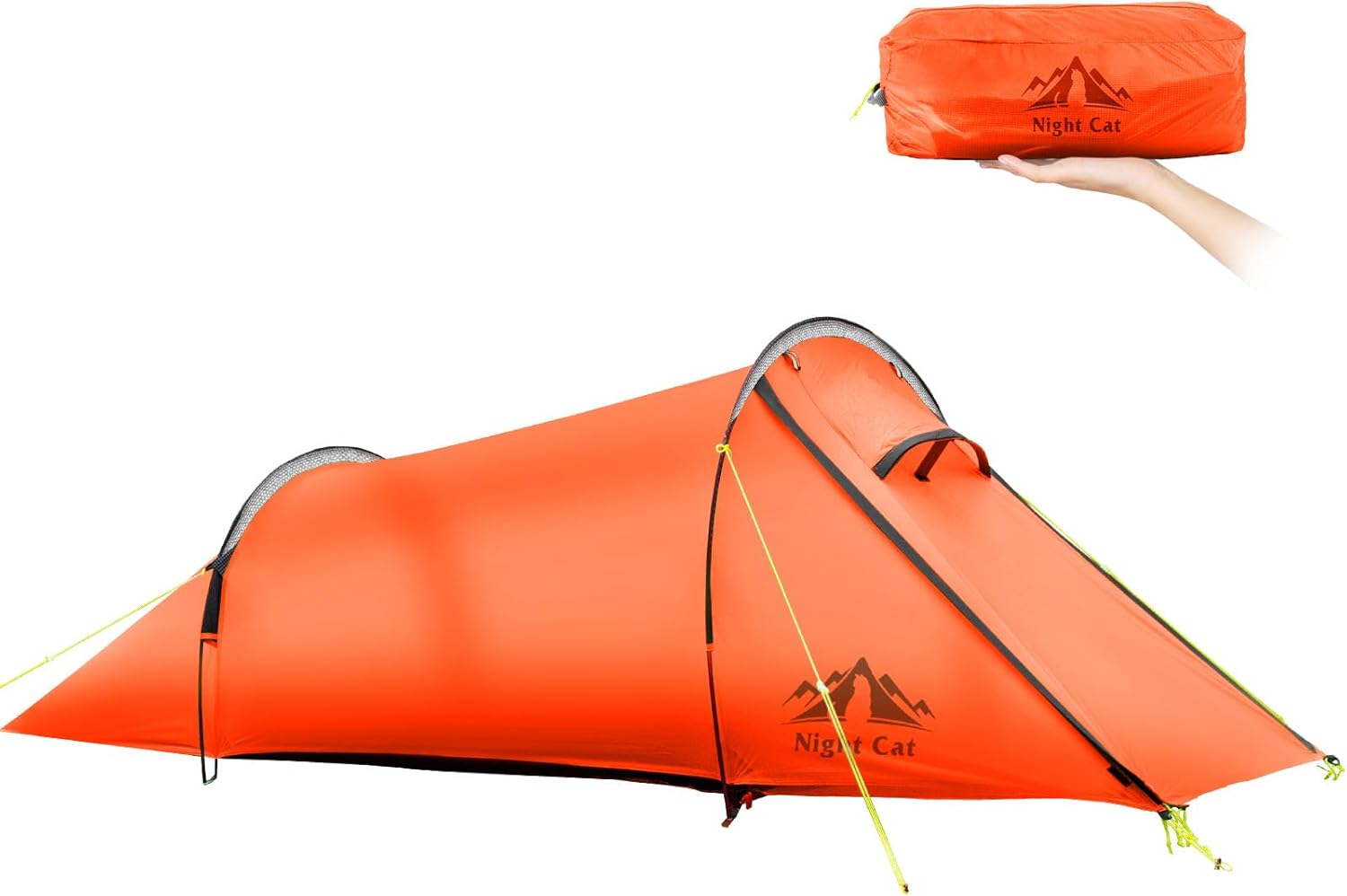 The Night Cat Tunnel Tent is the ideal solution for adventurers seeking a lightweight yet sturdy shelter for outdoor activities. Designed for ease of use, it offers a quick and effortless setup, even in remote or challenging environments. Fully waterproof and constructed from durable materials, it provides reliable protection against the elements, ensuring you stay dry and comfortable. The tent's sturdy construction, featuring 12 aluminum pegs and 4 guylines, ensures stability in various weather conditions, making it perfect for bikers, fishermen, or anyone exploring the wilderness. Despite its compact packing size, the Night Cat Tunnel Tent is surprisingly spacious inside, comfortably accommodating 1 people and providing extra porch space for gear storage. Our team is dedicated to supporting you throughout your journey, ensuring a hassle-free and memorable outdoor experience. Whether you're camping in the wilderness or deep into the forest, this tent is your perfect companion for a fun and comfortable adventure.