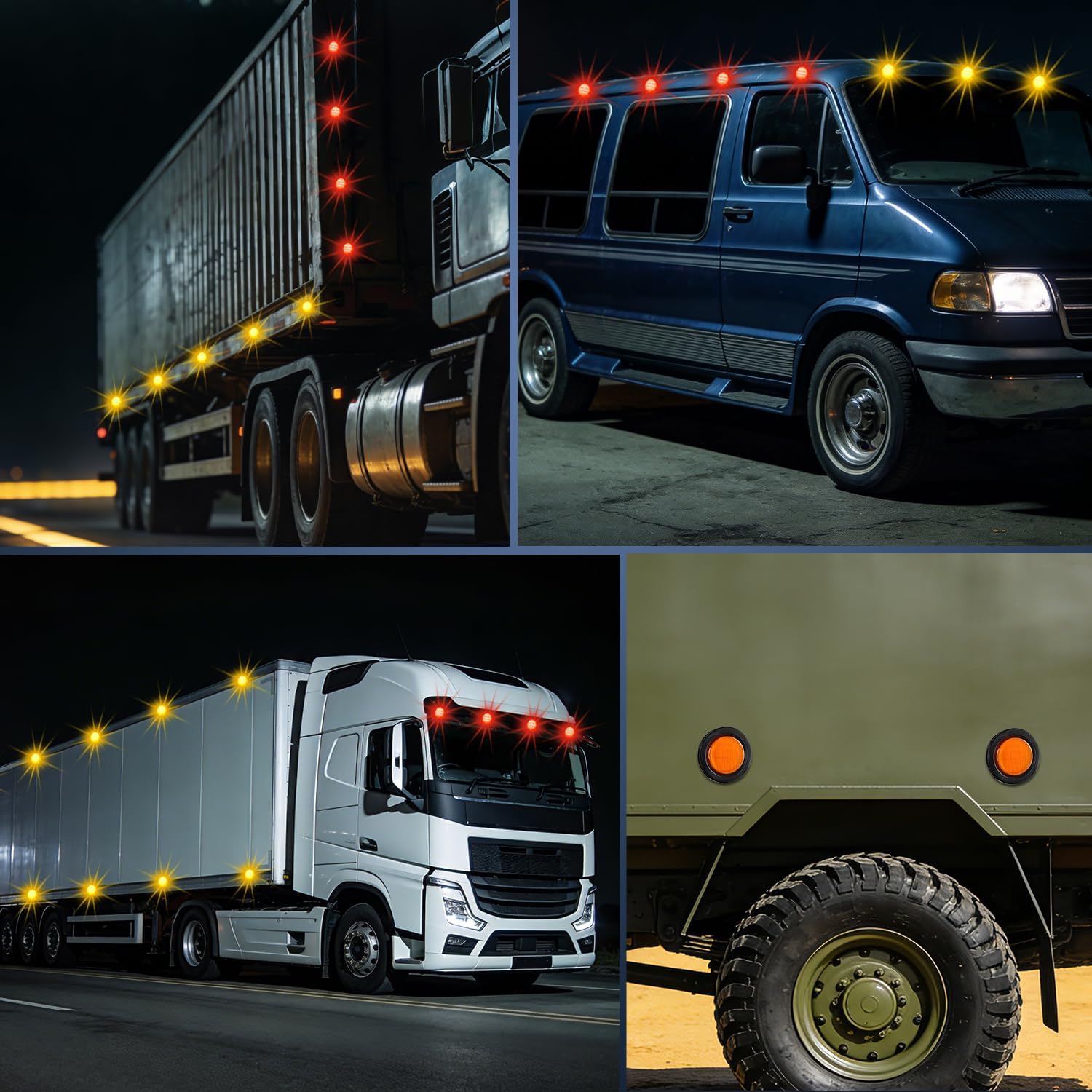 | Included Components | 4pcs red and 4pcs amber 2.5inch 13LED round marker light, rubber grommet and 2prong plugs. |