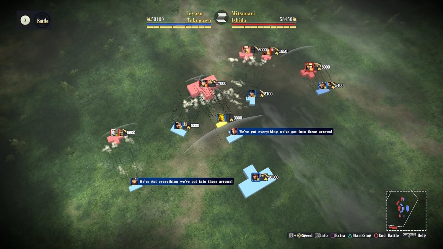 Battles play a vital role in Nobunaga's Ambition: Sphere of Influence. Although it is not necessary for players to declare war to strengthen their position, enemy lords may attack castles, towns, and settlements to increase their area of influence and grow their wealth. Defeating enemy fiefs can also strengthen the overall standing of the player's chosen clan, so growing a strong, well-equipped and well-trained, loyal army is key to successfully completing the game. Players can enter the battlefield with one or multiple army regiments, call on banner-men, allies and subordinates, and strategically use the terrain to the advantage of their clan! Battles are resolved in multiple ways, including a remote, birds-eye view of the map where there is free control of individual armies or combinations of allied forces, and a close-up view option that offers more control of individual units. The first option allows for a Multi-faceted Battle with various fronts and skirmishes across the map, and allows control of the chosen clan and its allied forces. All battles are in real time, so this offers a better overview of the map, as well as ally and enemy movements. With the second option, players can strategize further using information such as terrain particularities and current weather conditions. Close-field battles also offer the player the chance to take the role of the Grand Commander which opens up the option to use officer 'Traits' and 'Tactics'.
