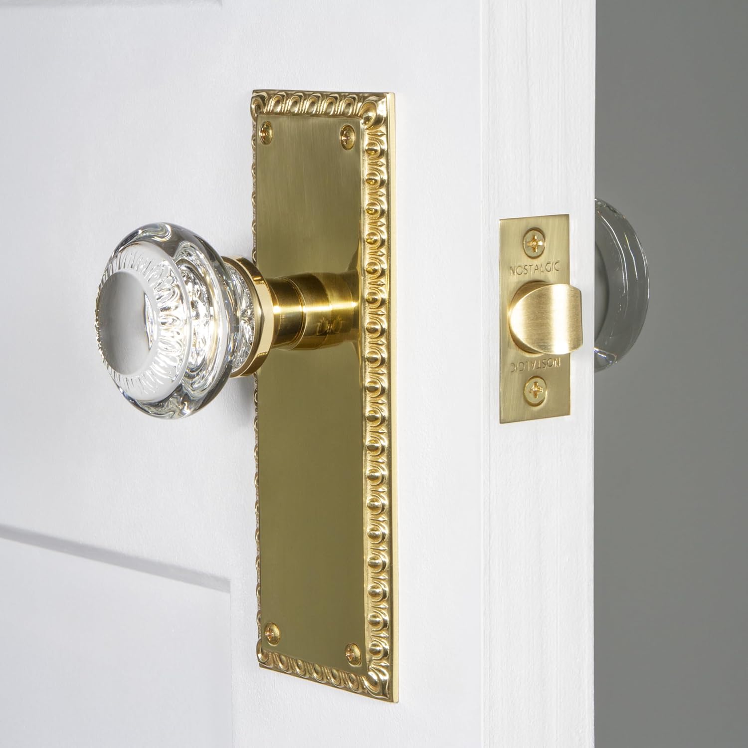 Embrace the elegance of bygone eras with the Neoclassical plate and crystal door knob from Nostalgic Warehouse. This door hardware piece merges the delicate floral crown and distinctive swirl design that defines classic elegance with a touch of sophistication. Perfect for those seeking to add a vintage or antique flair to their doors, the Neoclassical collection pays homage to the rich architectural history while ensuring modern functionality. This design not only stands out for its aesthetic appeal but also benefits from the durability of the backplate being made of solid brass. Solid brass is well-known for its strength and ability to hold fine details, making it the perfect material for crafting the intricate Egg & Dart pattern. Whether renovating a historic home or infusing a new build with character, this door hardware set elevates your space with its unmatched beauty and quality craftsmanship.