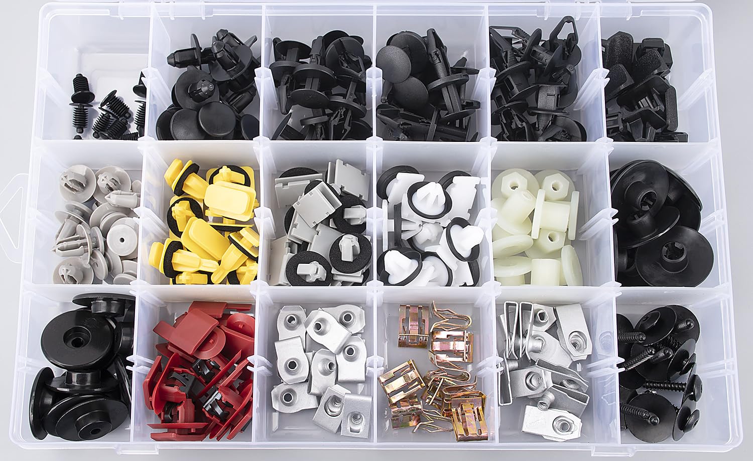 Black Nylon Door Weatherstrip Retainer Top Head Diameter: 10mm Stem Length: 12mm, Stem Diameter: 6.2mm 2 ๐ด OEM#11612035 Black Nylon Front Fender & Body Side Liner Push-Type Retainer Head Diameter: 20mm, Stem Length: 12mm Fits into 8.5mm Hole 3 ๐ด OEM#11589289 Black Nylon Air Distributor & Windshield Defroster Push-Type Retainer Head Diameter: 18mm, Stem Length: 17.5mm Panel Range: 2.0mm - 4.5mm Fits into 6.5mm Hole 4 ๐ด OEM#11589291 Black Nylon Air Dam & Grille Push-Type Retainer Head Diameter: 18mm, Stem Length: 22mm Panel Range: 7.0mm - 9.5mm Fits into 6.5mm Hole 5 ๐ด OEM#11589290 Black Nylon Air Inlet Grille, Bumper Fascia & Front Brake Caliper Cooling Duct Push-Type Retainer Head Diameter: 18mm, Stem Length: 20mm Panel Range: 4.5mm - 7.0mm Fits into 6.5mm Hole 6 ๐ด OEM#11547341 Black Nylon Bumper Moulding Clip Head Size: 11.5mm x 21mm Stem Length: 11mm, Overall Height: 17mm 7 ๐ด OEM#11547574 Gray Nylon Door Trim Panel Retainer Top Head Diameter: 13mm Stem Length: 14.8mm Stem Diameter: 9mm 8 ๐ด OEM#15864780 Yellow Nylon Rocker Moulding Clip with Sealer Top Head Size: 9.5mm x 20mm Bottom Head Size: 14mm x 20mm Stem Length: 20mm Fits into 9mm Hole 9 ๐ด OEM#19352782 Gray Nylon Rocker Moulding Clip with Sealer Top Head Size: 12mm x 20mm Bottom Head Size: 12mm x 20mm Stem Length: 11mm Fits into 9mm Hole 10 ๐ด OEM#11547581 White Nylon Body Side & Exterior Trim Moulding Clip with Sealer Top Head Size: 12mm x 20mm Bottom Head Diameter: 19mm (Including Sealer) Stem Length: 11mm Fits into 9mm Hole 11 ๐ด OEM#11547637 Natural Nylon Bumper Deflector Flange Nut Thread Size: M4.2 (#8) Flange O.D.: 20mm Hex Size: 10mm, Height: 13.5mm 12 ๐ด OEM#94530387 Black Nylon Wheel House Liner Retainer Head Diameter: 30mm, Stem Diameter: 10mm Stem Length: 8mm, Overall Height: 10mm, Fits 5mm Stud 13 ๐ด OEM#15265199 Black Nylon Bumper Cover Grommet Head Diameter: 28mm, Stem Diameter: 13.3mm Stem Length: 5mm, Overall Height: 7mm, Hole Diameter: 4.5mm 14 ๐ด OEM#11547026 Red Nylon Interior Trim & Windshield Garnish Moulding Clip with Metal Reinforcement Top Head Size: 17mm x 24mm Bottom Head Size: 14mm x 28mm Stem Length: 10mm 15 ๐ด OEM#11516397 Zinc Organic Locking Thread Screw Size: M4.2-1.41 (#8) Panel Range: .5mm-2.0mm (.020โ-.079โ) Center of Hole to Edge: 10mm (25/64โ) 16 ๐ด OEM#11589329 Trivalent Yellow Zinc Pillar Trim Panel & Radiator Grille Fastener Width: 12mm, Length: 15.5mm โUโ Width: 5mm 17 ๐ด OEM#11548580 Zinc Organic Metric Extruded U-Nut Screw Size: M4.2-1.41 (#8) Panel Range: .65mm - 3.8mm (.026โ - .149โ) Center of Hole to Edge: 15mm (19/32โ) 18 ๐ด OEM#11548270 Trivalent Black Zinc Fender Apron Torx Button Head Sems Tapping Screw Screw Size: M4.2-1.41 x 20mm Washer Diameter: 19.5mm
