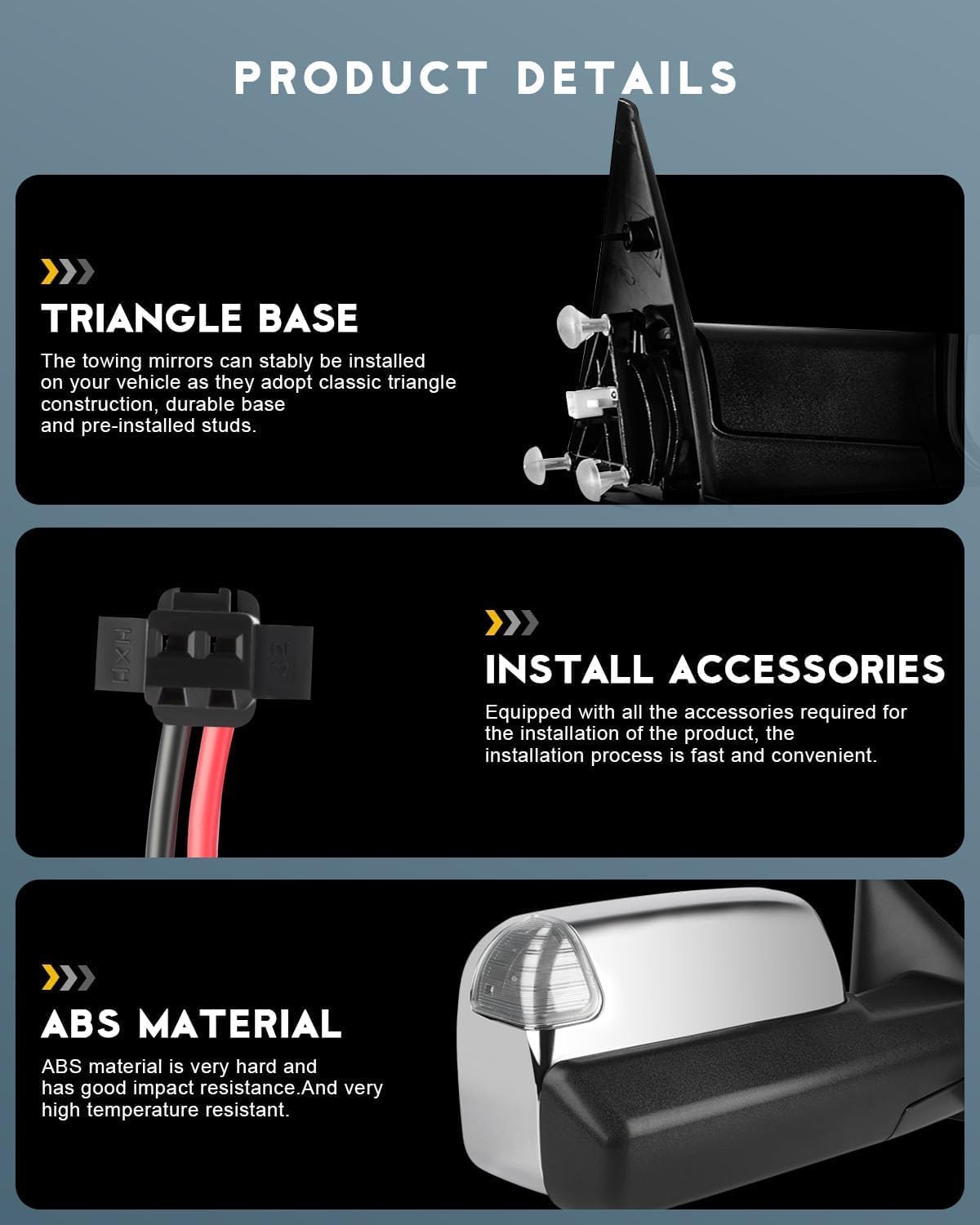 | Other Special Features of the Product | Power Adjusted,Heated,LED Turn Signal Light,with Chrome Cap Housing,Manual Folding and Flip Up |