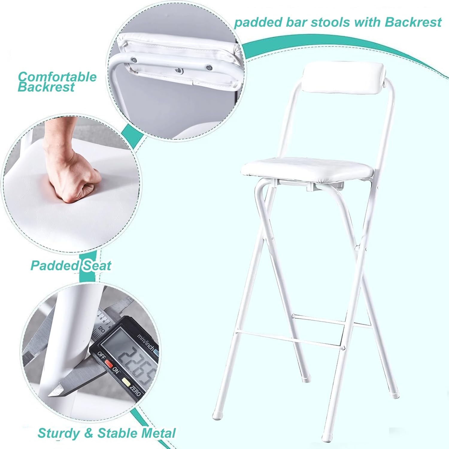 Imagine having dinner with your family every day, relaxing and enjoying long conversations on these elegant comfortable stools, whose design makes them a great choice for any home or work environment! The Foldable Breakfast High Chair Kitchen Stool is perfect sitting in the kitchen while meal, working at home. Folding stools are sturdy yet lightweight, making easy to move store. Folding stool dimensions: Seat surface height from ground: 60cm/24in (suitable 90cm/35.4in) 65cm/26in 95cm/37.4in) 70cm/28in 100cm/39in) 75cm/30in 105cm/41.3in) Folding height: 95cm/37.4in, 101cm/40in, 107cm/42in, 112cm/44in Seat diameter: 30x30cm/12x12in Material: steel pipe + PU seat Color: White Packing list: 2 x portable folding chairs Notice: Manual measurement, please allow slight errors size. Colors may vary slightly due different screen displays
