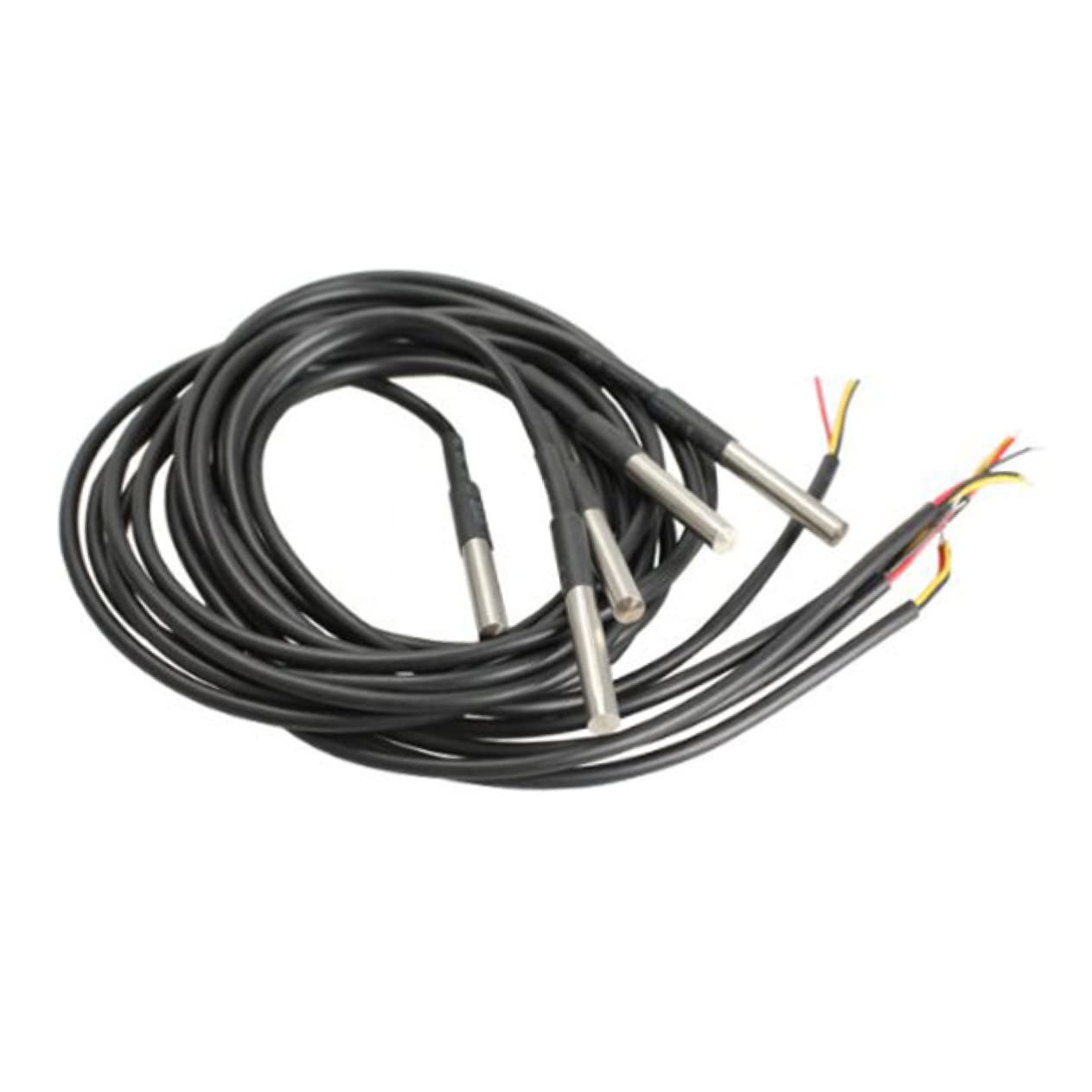 Package Include 15 * Waterproof Temperature Sensors Temperatures Transducers (Black) Features - Accuracy over the range of -10°C to 85°C: ±05°C temperature probe. - Each cable length: about 100cm . - Color: mainly black temperature sensor. - Stainless steel tube size: about 6*50mm (Diameter*Length) fridge thermometer. - Power supply range: 30V-55V refrigerator thermometer. - Output lead: red (VCC), yellow (DATA), black (GND) hay temperature probe. - Operating temperature range: -55°C to 125°C (-67°F to 257°F) thermometers - Material: stainless steel refrigerator thermometers. - Storage temperature range: -55°C to 125°C (-67°F to 257°F) freezer thermometer - components, unique single bus interface dual channel thermometer. - 5 pieces of the waterproof temperature sensors in one set will be together temperature sensors. - It is a original chip, three wire temperature sensor thermometer . - 9 bits to 12 bits adjustable resolution temperature thermometerGoods InformationTemperature transducer 0V to 5.Waterproof temperature transducers With professional design and to use, it is really a wonderful waterproof temperature sensors set for choice.temperature 5V voltage.Temperature sensor The item is a set of 5pcs original chip, three-wire temperature sensors, which adopts stainless steel tube encapsulation with good waterproof, and performance, and is powered by 3.Digital Temp Probe Besides, its thermometer resolution can be adjusted from 9 to 12 bits