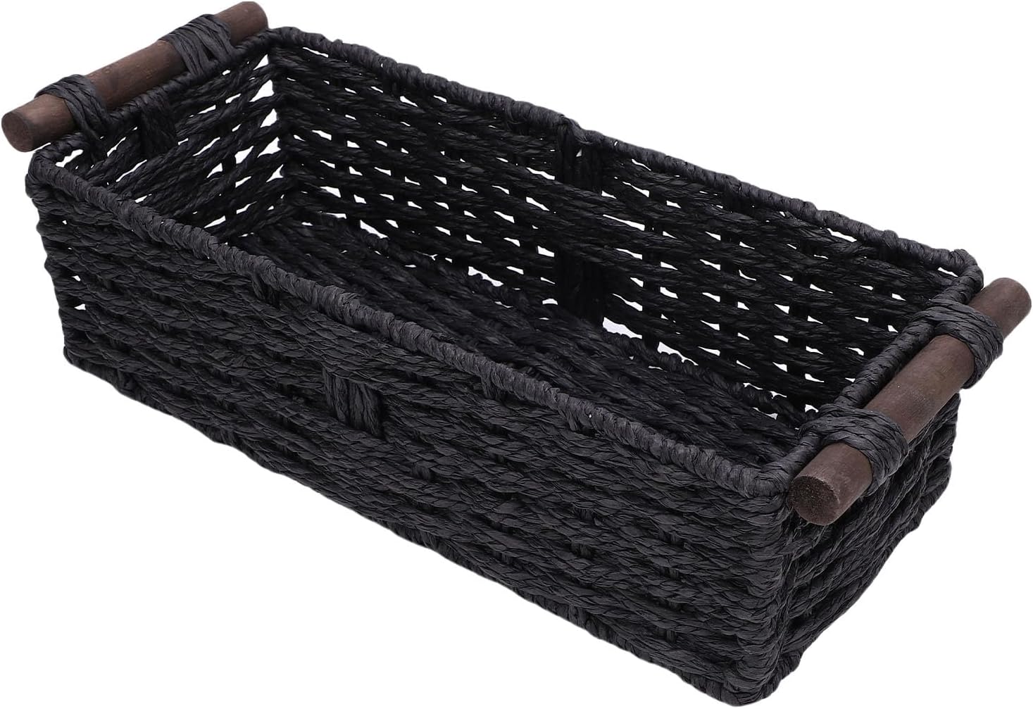 1. Handwoven Paper Rope Construction: Made with long woven paper rope, this basket features a naturally soft texture and excellent breathability for reliability and rustic charm. 2. Wooden Handles: Equipped with sturdy, widened wooden handles on both sides, the woven storage basket offers effortless portability whether relocating or tidying up spaces. 3. Elegant and Cozy Aesthetic: The toilet paper basket's simple yet stylish design adds a warm, countryside touch to any room, creating a neat and inviting ambiance. 4. Versatile Storage Solution: Excellent for bathrooms, living rooms, kitchens, or offices, ideal for organizing everyday essentials and reducing clutter. 5. Thoughtful Option: A beautiful and practical present for friends or family, this charming paper rope storage basket is sure to be appreciated as a heartfelt k>. Specification: Item Type: Toilet Paper Basket Material: Paper Rope, Pine Wood Weight: Approx. 420g/14.8oz Package List: 1 x Toilet Paper Basket