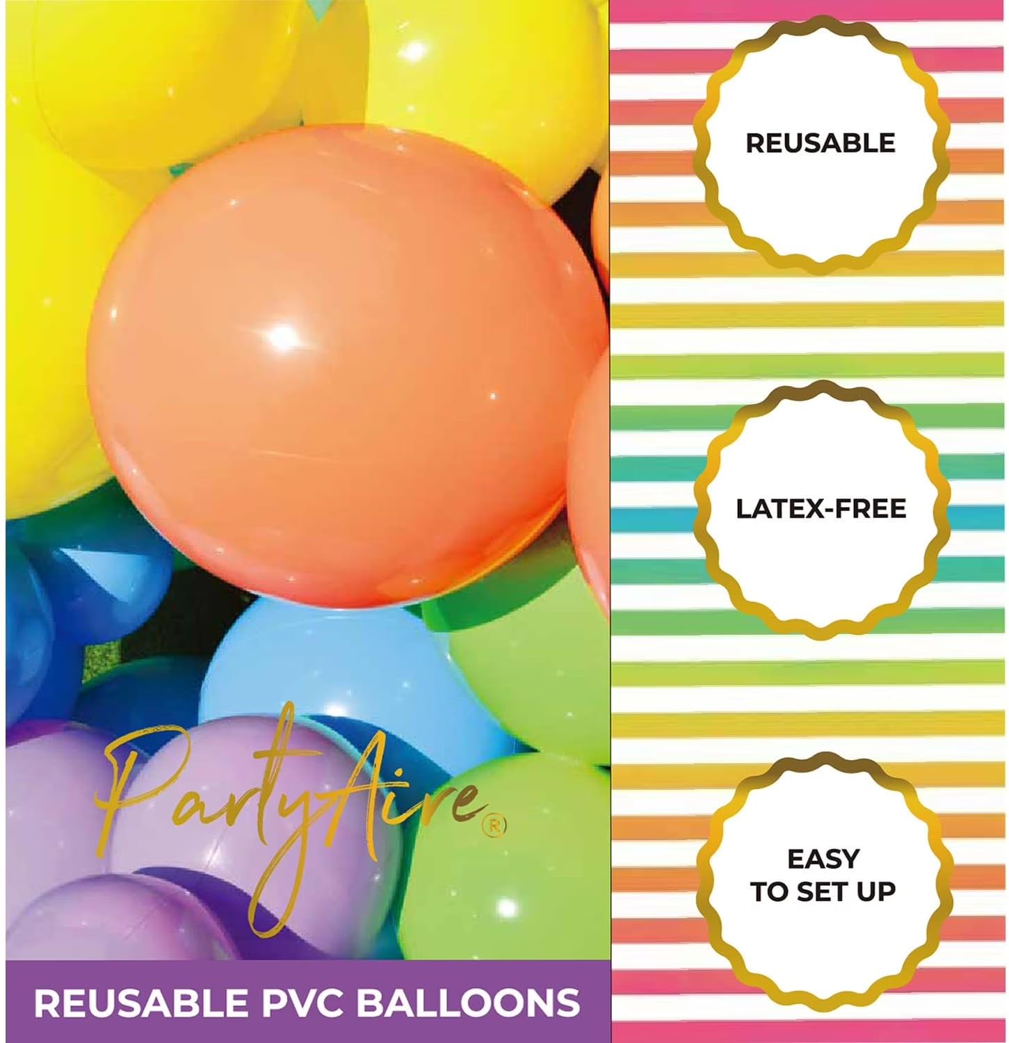 Revolutionize Your Celebrations with PartyAire Reusable DecorTired of spending hours on balloon arches that only last one day? The PartyAire 18' Reusable PVC Balloon Arch is the game-changing solution for busy parents, event planners, and DIY hosts. Crafted from premium, latex-free PVC, this 28-piece kit gives you the look of a professional balloon installation with the convenience of a reusable tool.Sustainable & Durable Design: Unlike traditional balloons that are prone to popping and create waste, PartyAire balloons are designed like high-quality inflatables. They hold air for days and can be stored compactly once the party is over. Its weather-resistant material means you don't have to worry about the sun or a light breeze ruining your display.Why PartyAire is a Must-Have for Your Next Event:Huge Visual Impact: Spans 18 feet to create a stunning focal point for any room or outdoor space.Time Saver: What used to take hours now takes 10-15 minutes. Just inflate, link, and hang!Safe for Everyone: 100% Latex-free material makes it safe for guests with allergies.Versatile Decor: Perfect for birthdays, graduations, baby showers, or holiday celebrations like the 4th of July or New Year's Eve.Cost-Effective: Pay once and use it for every birthday and milestone for years to come.Whether you’re framing a mantle or creating a grand entrance, the PartyAire Balloon Arch delivers consistent, vibrant results every time. Join the thousands of hosts who are making their parties more stylish and sustainable!Pro-Tip: Fill the balloons until they are firm for the best photographic look. Mix and match different color sets for a custom multi-tonal display!