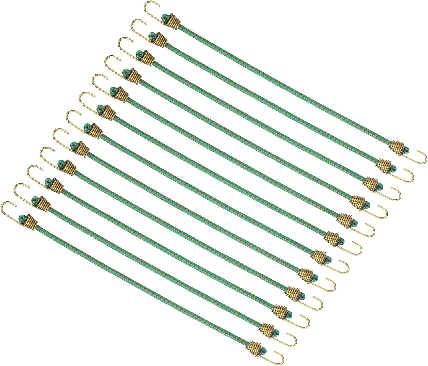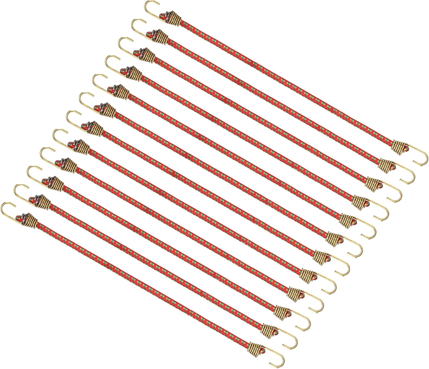 Reasons for selection - Bungee cords with hooks offer vibrant colors and superior tension, their rubber inner core allows them to stretch to double their length.The electroplated steel hooks ensure a firm grip, while the weather-resistant outer jacket protects against sun damage, making them reliable for outdoor use.Measurement - Length: 25.4 cm / 10 inch; Wire Diameter: 4 mm / 0.16 inch; Hook Dimensions: Length: 32 mm / 1.26 inch; Inner Width: 8 mm / 0.31 inch; Wire Diameter: 1.5 mm / 0.06 inch; Packing List: 2 Pcs x Bungee Cords.Suitable for - These adjustable rubber stretchy bungee cords are versatile and practical, suitable for securing items during transportation, organizing camping gear, and creating custom storage solutions. They are great for camping, cycling, hiking, travel, and other outdoor activities, as well as DIY projects and everyday use around the house.Installation - To install bungee cords with hooks, begin by locating solid and reliable points on your luggage, roof rack, tent, or other items you want to fasten. Next, simply stretch and hook the cords between these points—no tools are needed. Kind tips - Avoid overstretching to maintain elasticity. When using, ensure the hooks are properly secured to prevent accidental release.