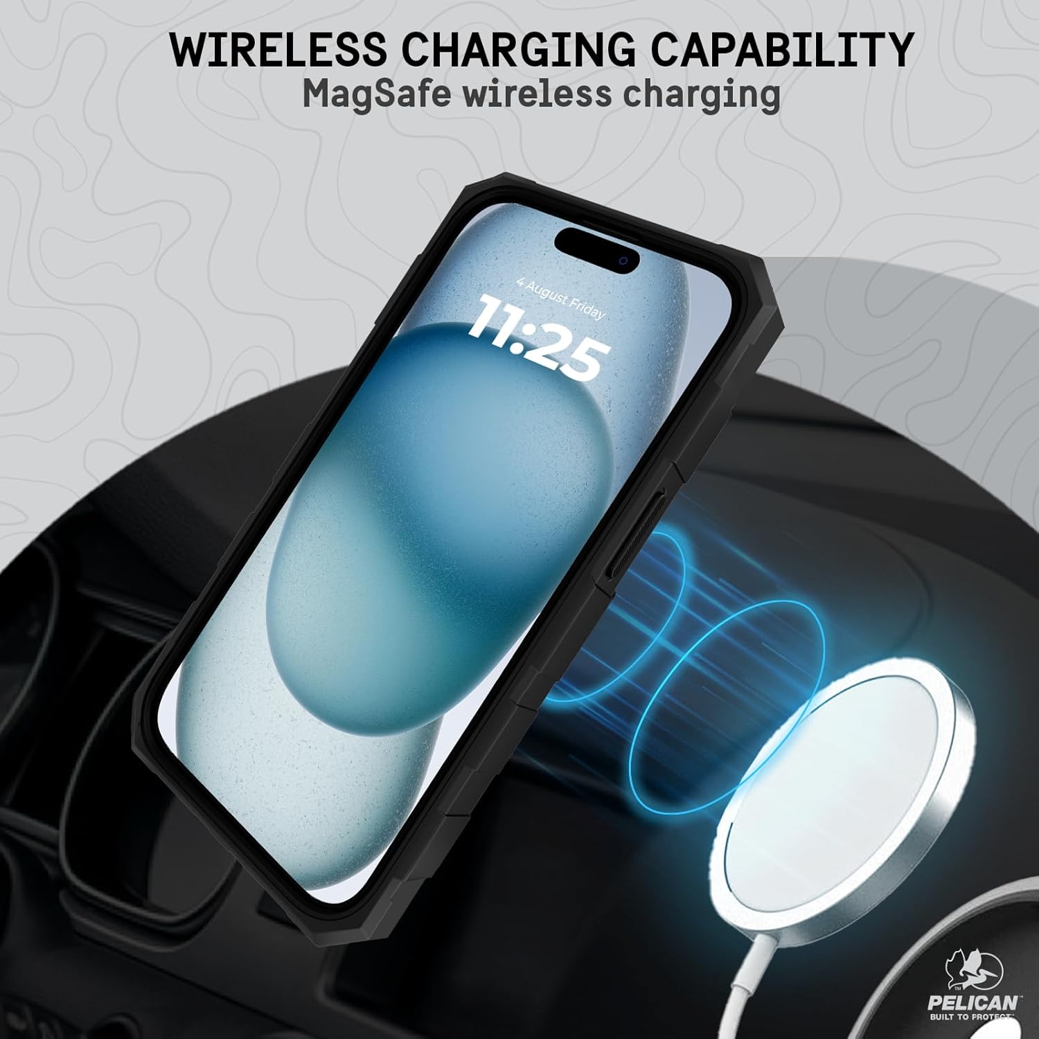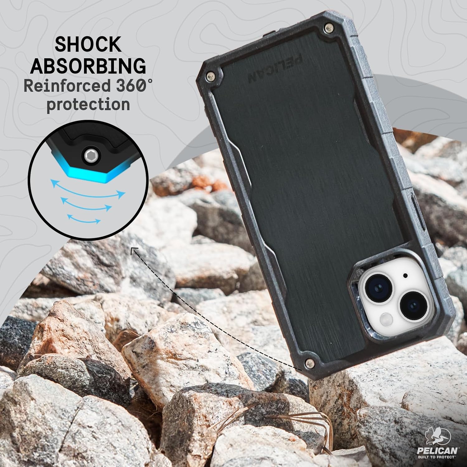 Pelican's Shield Brushed Aluminum series case protects your iPhone 15 in 4 protective layers against anything! Whether you fumble your phone looking for your keys or forget it on top of your car, your phone will be safe and fully operational. The shock-absorbing interior shell and reinforced corners work together to create top-notch 21ft drop protection that exceeds military testing standards. It also comes with an easy-to-use holster included with a belt clip, and a kickstand for your next adventure. The built-in powerful magnet syncs seamlessly with all MagSafe chargers and accessories, does not influence any type of phone signals, and precise laser cut-outs fit flawlessly with your phone, allowing full access to your phone functions.Pelican iPhone 15 Case Features:21ft Military-Grade Drop ProtectionCompatible with MagSafeCertified Recycled MaterialsMatte Black Finished Phone CaseAnti-Scratch TechnologyEasy-To-Use Holster Included with Belt Clip and KickstandImpact Absorbing RidgesCushioned CornersReinforced Back PanelNon-Slip EdgesLifetime WarrantyWho are we: At Pelican we have gained prestige among our buyers by protecting what matters the most and we are now a leading supplier of rugged cases. We always strive to create products with the latest tech, premium materials, and extreme standards.We have a collection of defensive cases, waterproof cases, and screen protectors for recent flagships like the iPhone 16 Pro Max, iPhone 16 Pro, iPhone 16 Plus, iPhone 16, S24 Series, Pixel 9 Pro Fold, iPad, AirPods, and more.