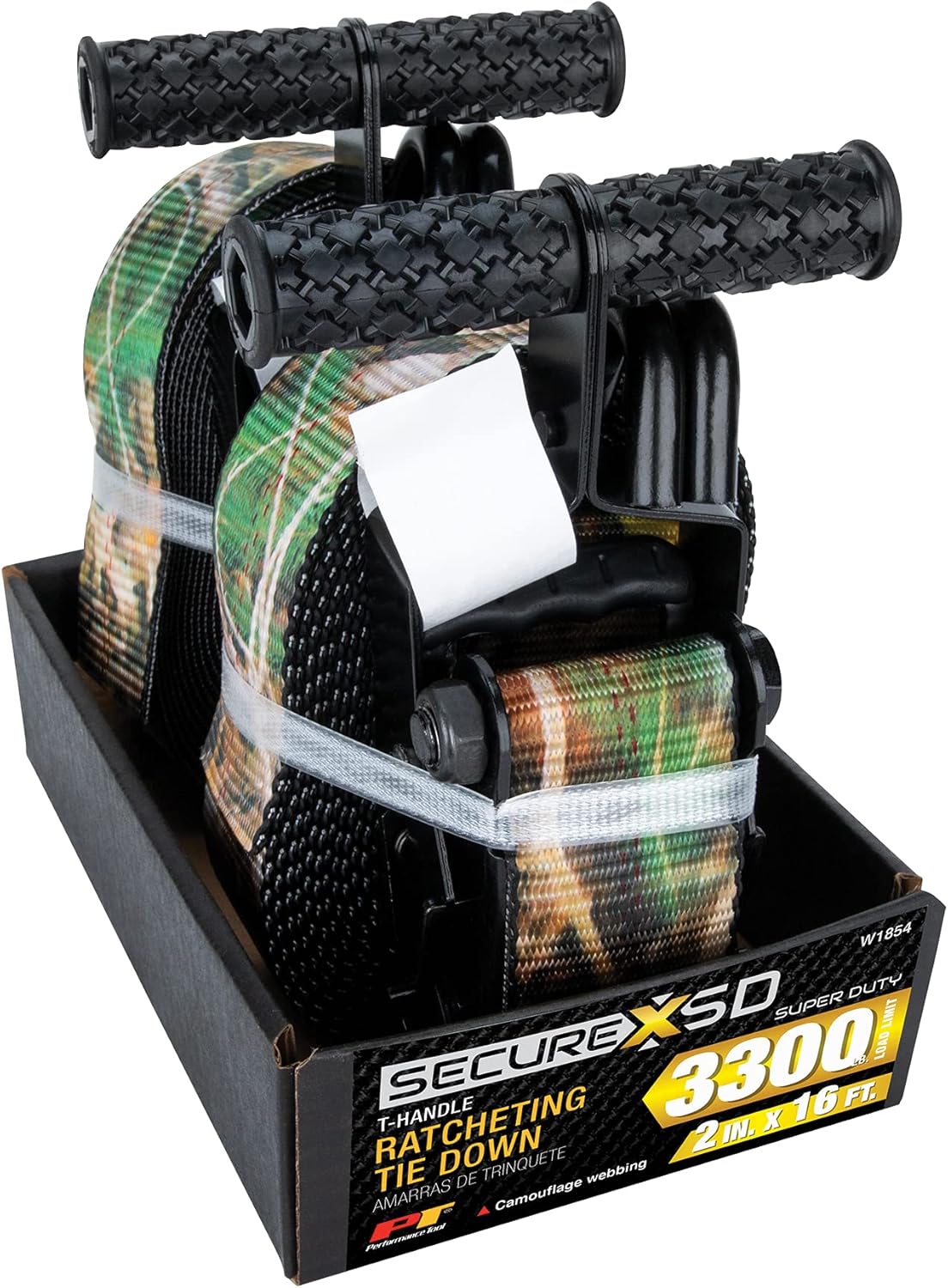 Performance Tool W1854 2-Inch X 16' Camo Tie Down Strap - Heavy Duty Ratchet Straps with Quick Release for Secure Cargo Transport and Outdoor Adventures