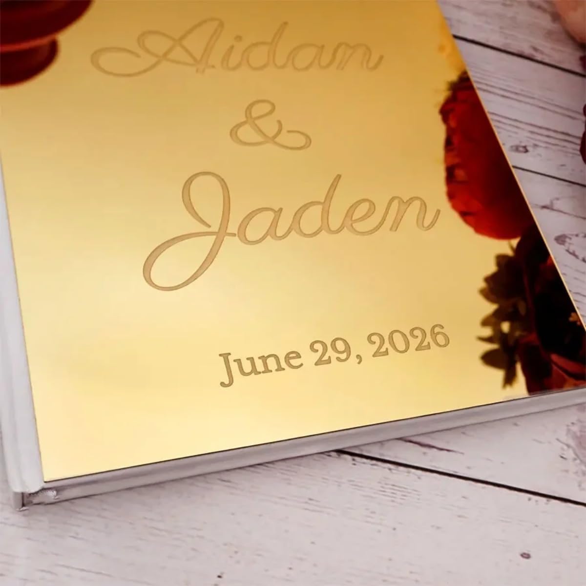 Description : Size: 26x19cm(10x7.5 inch) Color: gold mirror cover, silver mirror cover, Inner Page Color: White Quantity of pages : 60 sheets (120 pages) . Thickness of inner page: 100g ( thickened paper, very suitable for signature ,suit for guestbook ) This book can engrave two names (by & connected) and a date ,(you can also just engrave two names and the & ,without a date ,also one name ) ,you can also add a blessing sentence ] . This book is Without backside mirror ,If you want a back cover for your book,please contact us. Create lasting memories with our Personalized Wedding Guest Book, perfect for weddings, receptions, and special occasions. 1.LIFETIME MEMORIES: Turn your most special day into a wonderful memory. Personalize the guest book with couple names, wedding date, and a special text. 2.Customizable Cover: The guest book can be personalized, creating a one-of-a-kind, unique guest book. 3.Beautiful Keepsake: A cherished memento that captures the essence of your special day, perfect for displaying on a coffee table or bookshelf. 4.Versatile Use: Ideal for weddings, anniversaries, or any special occasion where guests can leave heartfelt messages.