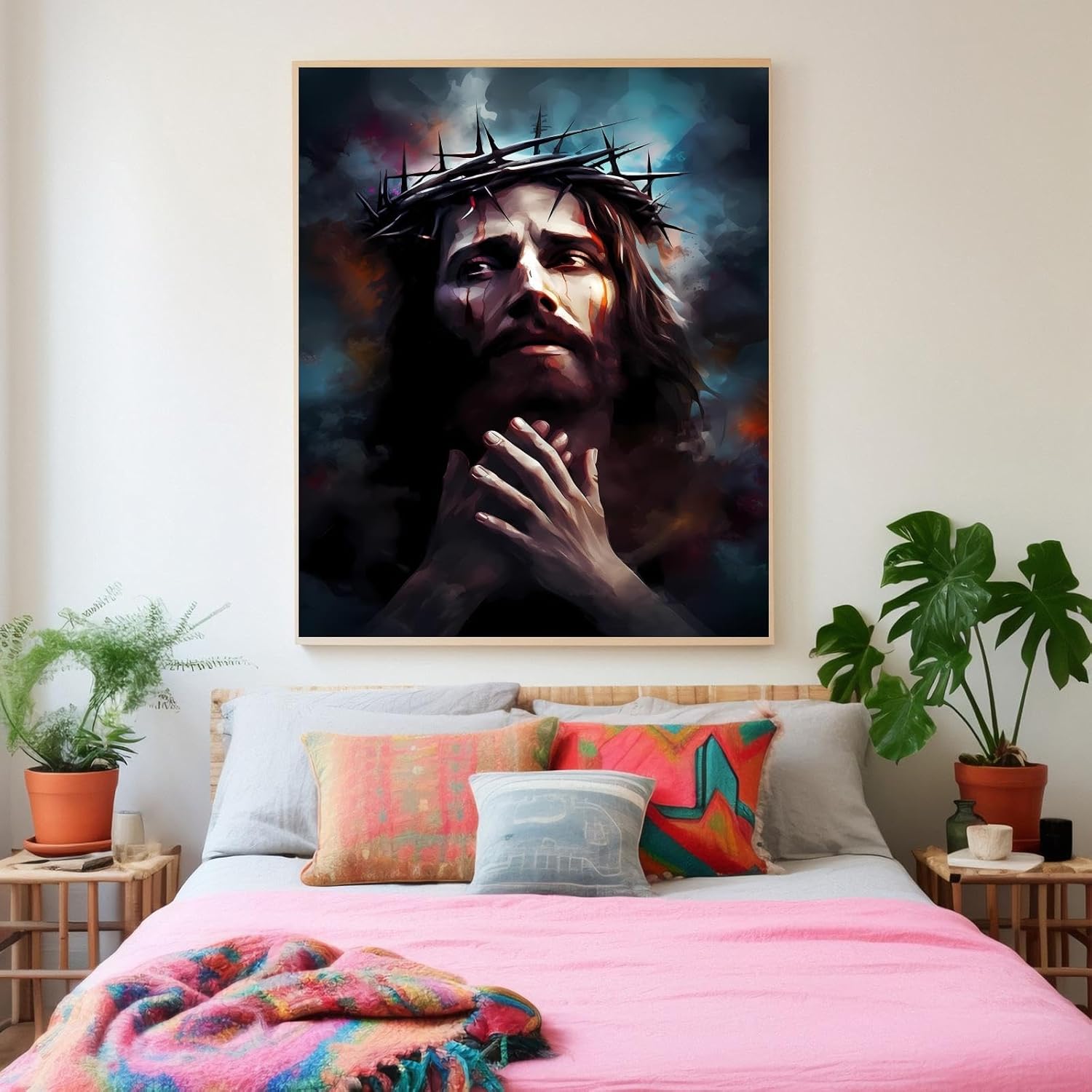 About Diamond PaintingMaterial: Full Round Diamonds + CanvasColour: Praying Jesus ChristCanvas Size: 20x30 Inch/50x75 cmName: Praying Jesus Christ Diamond PaintingApplication: Framed Hanging, Decorating Bedroom/Living Room/Walls, As A Gift. Cultivate The Concentration Of Doing Things, Get A Sense Of Satisfaction, Enhance The Relationship Between The Two Parties Working Together.How To Make Diamond Painting?1. Learn To Read The Canvas. The Canvas Is Labelled With Numbers. Each Number Corresponds To A Diamond Colour. Find The Diamond In The Numbered List According To The Corresponding Number.2. The Canvas Is Covered With A Protective Plastic Film. We Recommend That You Do Not Remove The Entire Sheet Of Plastic Film At Once. Instead, Start At The Bottom And Work Your Way Up, Slowly Removing The Film.3. Place The Desired Diamonds In The Tray. It Is Recommended That You Use One Colour At A Time. Gently Shake The Tray To Place The Diamonds Flat Side Down.4. Dip The Tip Of The Applicator Into The Gel. The Gel Will Allow You To Adhere The Diamonds.5. Gently Press The Tip Of The Applicator To The Rounded Side Of The Diamond.6. Peel Back The Plastic Film To Reveal The Area You Are Working On, Then Carefully Place The Diamond Into The Corresponding Numbered Box.Repeat Steps 4-6 Until The Design Is Complete.Caution:This Is A DIY Diamond Painting, Not A Finished Picture, You Need To Finish It By Yourself. All Of Our Diamond Paintings Are Packages, Guests Need To Make Their Own Handmade, We Provide The Necessary Materials And Tools.