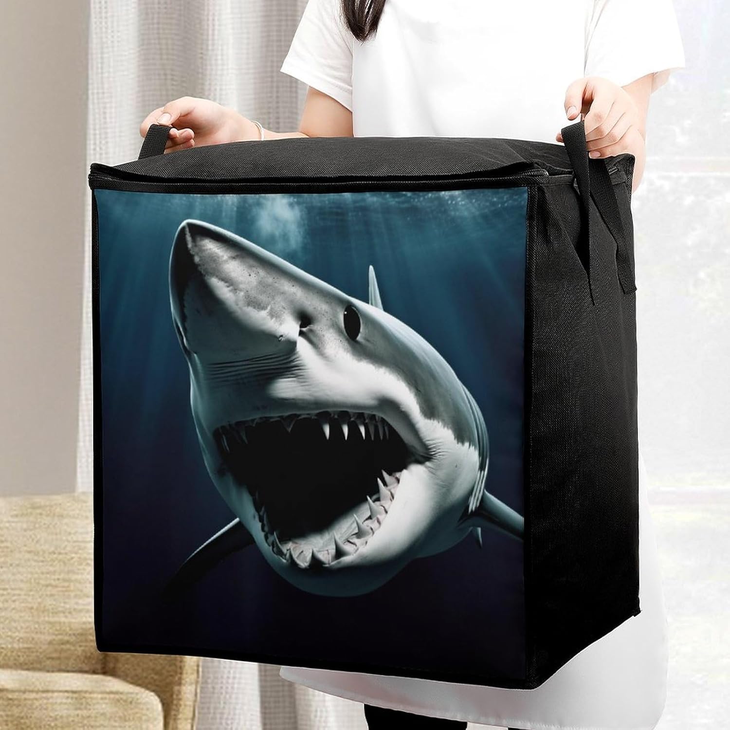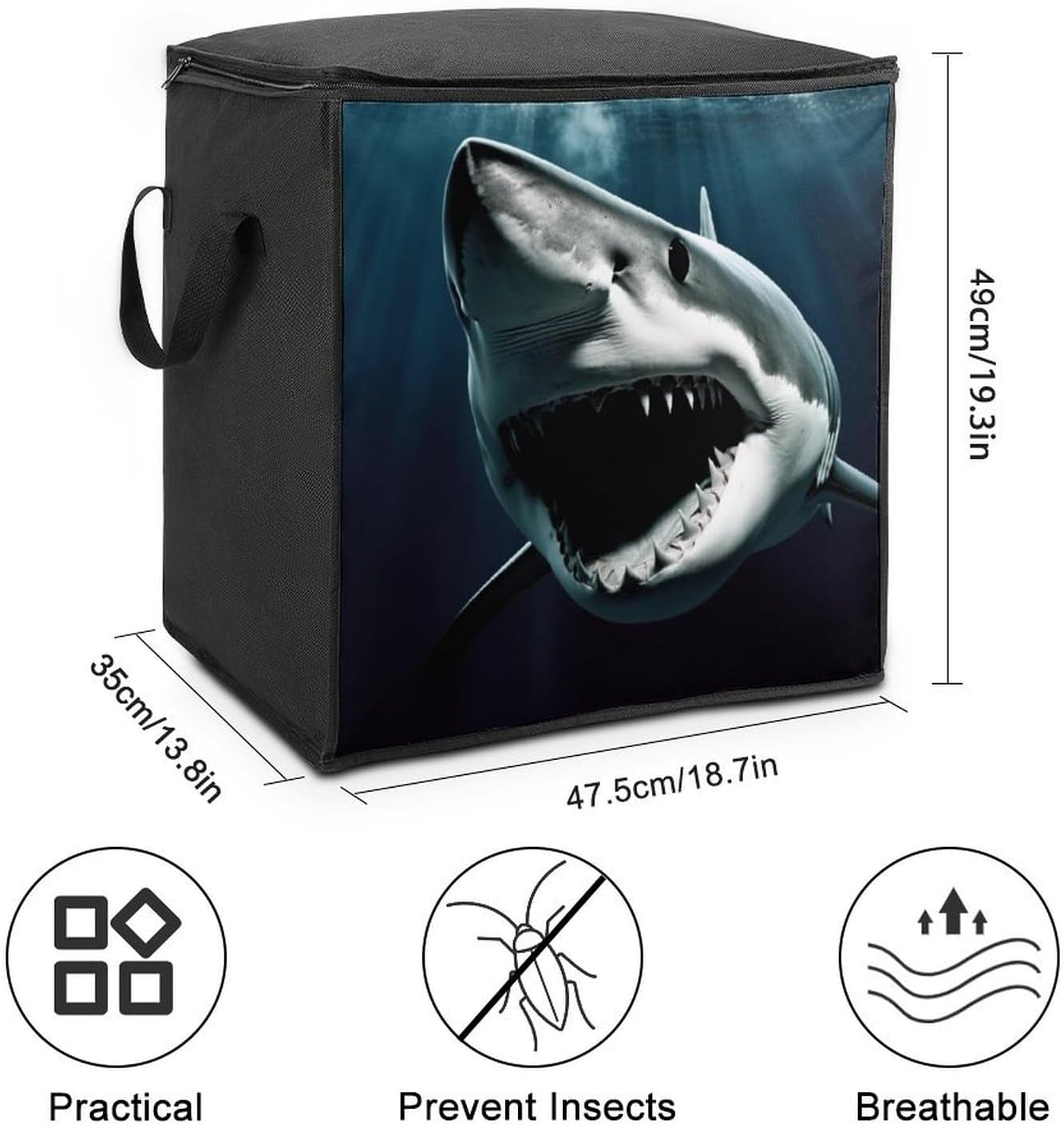 The Shark printed Large quilt storage bag fit easily into closets or shelves, and are powerful enough to hold your daily items, protecting your stored items from moisture, dust and damage, keeping them fresh and clean Bedroom storage bags can also be used to store seasonal and Christmas decorations, making them a suitable Christmas gift for family and friends