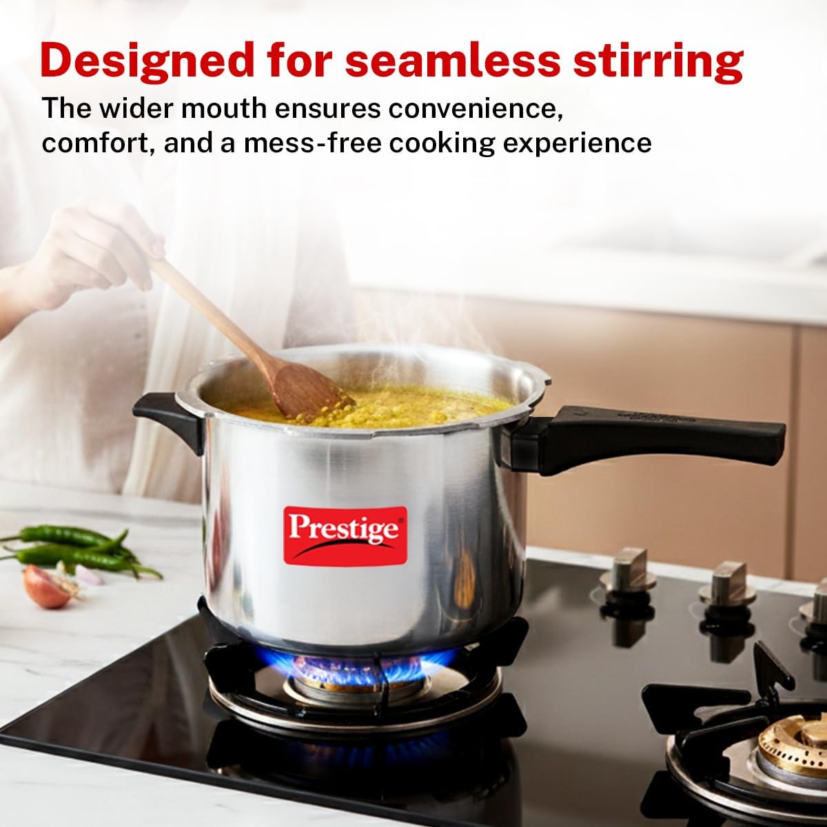 Prestige Popular uses the best quality virgin aluminium with stronger lugs and thick base to give your cooker a safe and long life. Sleeker handles allow for better grip. Available in various sizes of cooking capacities for all sizes of family. Comes with a set of safety features like GRS (Gasket Release System) and MSP (Metallic Safety Plug). ISI certified and also confirms to all international standards.