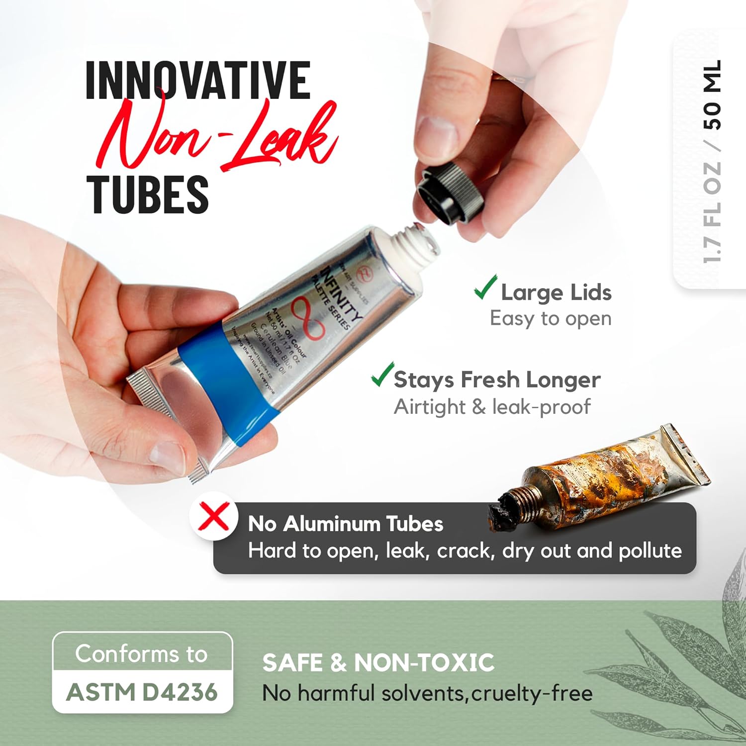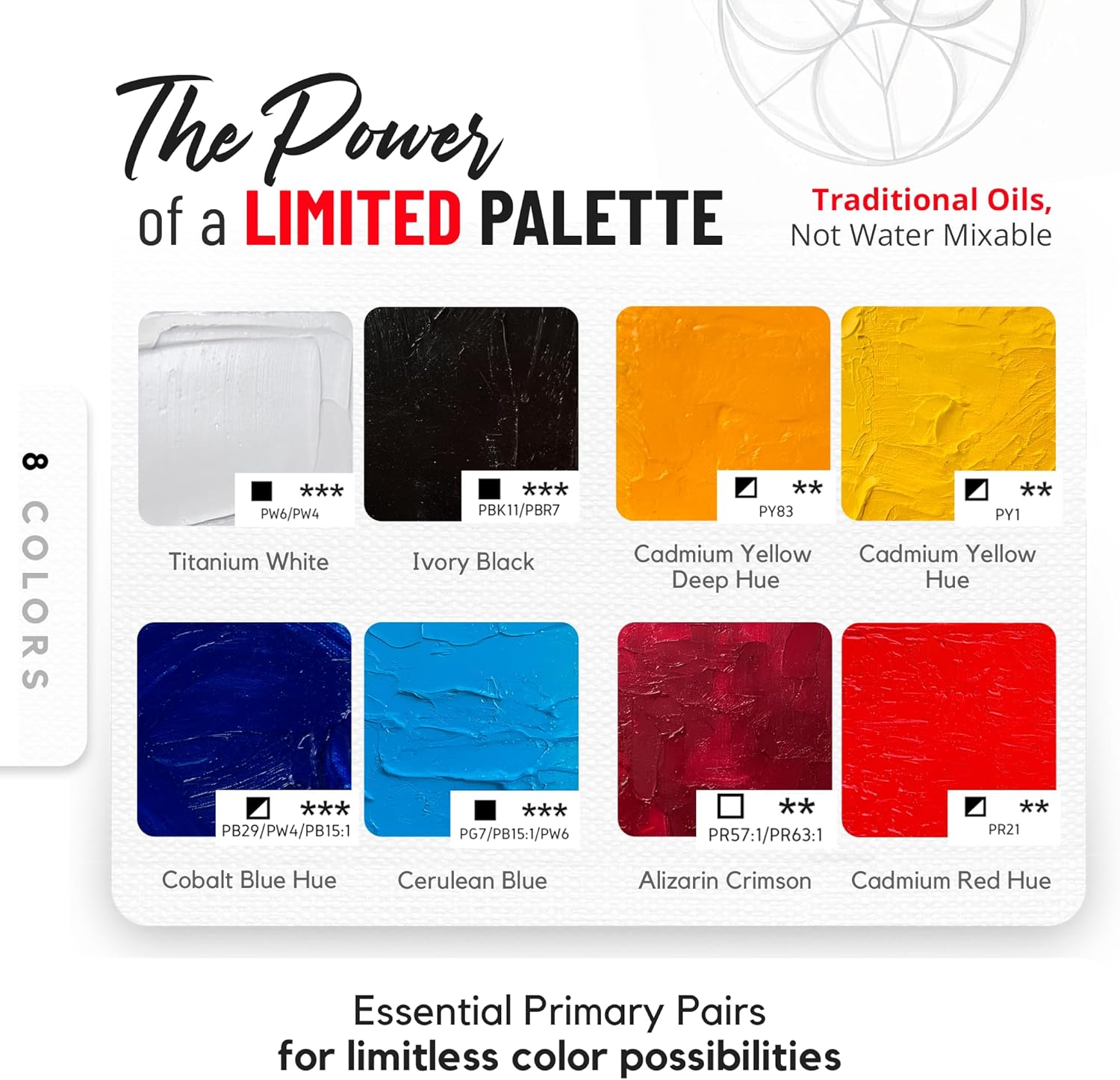 | Included Components | (Titanium White, Ivory Black, Cadmium Yellow Hue, Cadmium Yellow Deep Hue, Cadmium Red Hue, Alizarin Crimson, Cerulean Blue and Cobalt Blue), 8 x Airtight & Leak-Proof Plastic Tubes of Oil Colors, Leaflet with Color Information, Giftable Box |