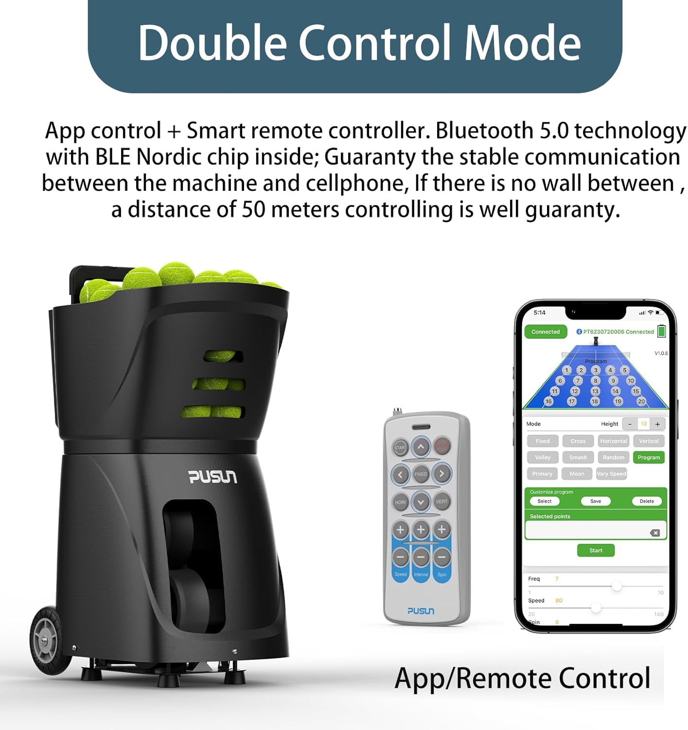 | Included Components | Tennis ball machine, battery, battery bag, charger for battery, cable for battery connecting, remote control, instruction manual |