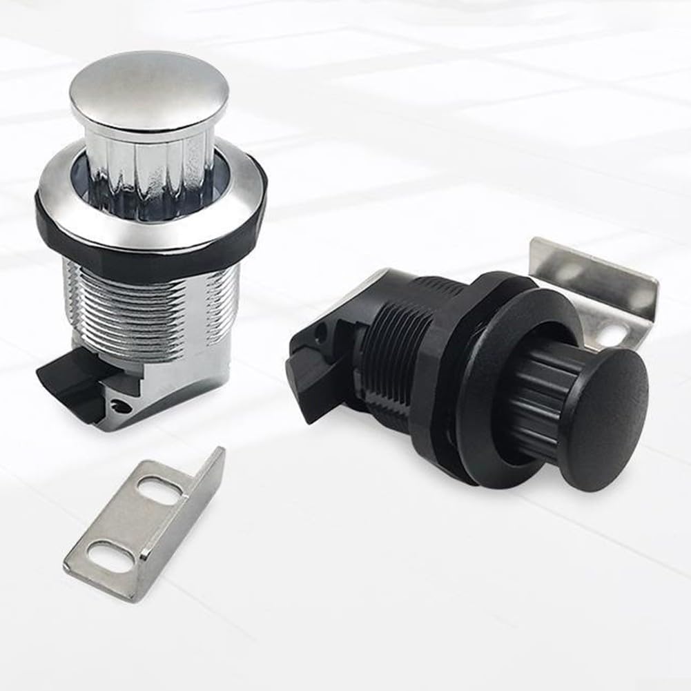 Product description Features:*Long-lasting Construction: This lock is made of a combination of plastic and metal, providing a lightweight yet robust solution for securing various applications without the bulk of heavier materials. *Press-to-Lock Mechanism: Designed with a convenient press-type functionality, simply press the button to lock, make sure easy operation that doesn't require a key for access. * for Versatile Application: Perfect for a wide range of uses, including cabinets, drawers, yacht tables, cupboards, and wall units, making it a practical choice for both marine and home environments. *Keyless Operation: The innovative push button closure allows for hassle-free locking and unlocking, giving users flexibility and control over for access to their storage spaces. *Simple Installation: Comes with a comprehensive screw bag, making it easy to install in various setups without the need for special tools or skills. Specifications:*Product Name:Embedded RV Yacht Rotary Push-to-Lock Door Lock*Material:Plastic*Size:As shown*Color:Black,SilverPackage Content:1 x Push Door Lock Manufacturer Contact Information no