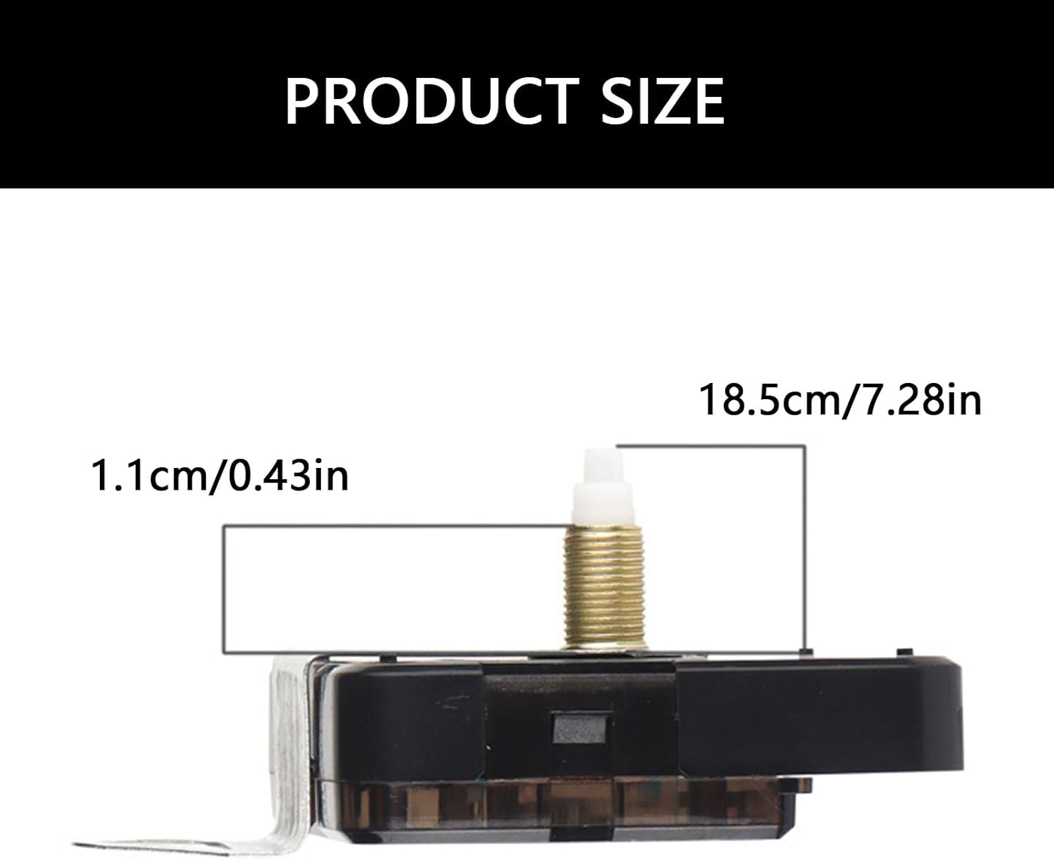 Product description Quiet Clock Mechanism Replacement With 0.73Inch Shaft Length Metal Movement Perfect For Home And Office ClocksFeatures:Our Clock Movement Replacement, featurings advanced quiet metal technology that ensures noiseless operations, perfect for maintaining serenes environment.This movement boasts high precise timekeeping, reducing the need for frequent manual adjustments, and is craft from durability, corrosions materials for long last performances.Suitable for clock enthusiasts seekings to enhances their creation, as well as hobbyists look for reliability and clock movement solution.Perfect for home setting like living room and bedrooms, this movement also suits office environment and public space such as schools and libraries, where silences and precise is important.With its 18.5mm shaft length and compatibility with various wall and mantel clocks, this clock movement replacement is a addition to any clock restoration or upgrades project.Specifications:Component:Plastic+MetalShaft Length:Approx.18.5mm/0.73inch for 8-9mm Thickness Clock PanelThread:Approx.11mm/0.43inchPower:1pc 1.5V 2A Battery(not included)12Option Type;Package Includes:1set Clock MovementNote:Please allow 1mm errors due to manual measurement. Due to the differences between different monitors, the picture may not reflect the actual item color. Manufacturer Contact Information as described