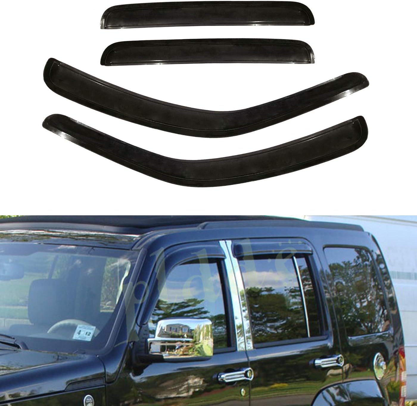 Style: These visors are outside mount style that will be attached to the door trim. Not In-channel style. Item Features: * Comes with 6 months warranty. * 100% Brand new in box. * Easy Peel-N-Stick installation. Direct Tape-On Design.No Cutting or Drilling Required. * Fully window protected from sun shade, wind, rain, snow deflector. * Help reduce heat buildup in park vehicles by allowing air in when partially open. * Long lasting material designed to withstand the rigors of the elements. * Make it possible to leave the windows down a few inches to get fresh air even on rainy days. * Comes With 3M Automotive-Grade Double-Sided Tapes. * Dramatically Improve Styling & Appearance.
