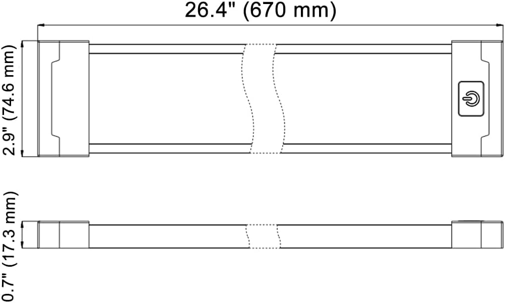 Specifications: Wattage: 16.2 Watt per Light Voltage: 12V/24V DC Current Draw: 1150 mA@12V, 570 mA@24V Switch Type: On/Off Touch-Activated Switch Color Temperature: Cool-White Finish: Grey Working Temperature: -40℃ ~ +50℃ Connection Type: Hardwired Housing Materials: Aluminum Lens Materials: Polycarbonate Lens Color: Clear Power Wire Length: 15.7 in. (40 cm) Wire Gauge: 20 AWG Lumen Output: 1620 lm Waterproof Rating: Non-Waterproof Product Type: Interior Light Net Weight per light: 1.27 lbs. (0.58 kg) Product Height: 0.68 in. (17.3 mm) Product Length: 26.37 in. ( 670 mm) Product Width: 2.94 in. (74.6 mm) Quality Warranty: 2 YearsSafety & Notes: 1. The light is the low voltage LED lights primarily designed 12-24 VDC mobile lighting. When installed for household, it is strongly recommended to be processed by professional electrician in strict accordance with the safety standard. 2. For your safety, please cut off the power source before performing any installation or wiring procedures. 3. When lights illuminated, direct eyes exposure to the LED light beam need to be avoided. 4. Power button is touch sensitive for on & off control 5. Indoor or cabin use only. Without immerse in the water. Installation Instructions: 1. Remove two endcap screws to access mounting holes. 2. Mount LED fixture to surface using 4 mounting screws, and then replace endcaps. 3. Connect RED wiring to Positive, and the WHITE to Negative