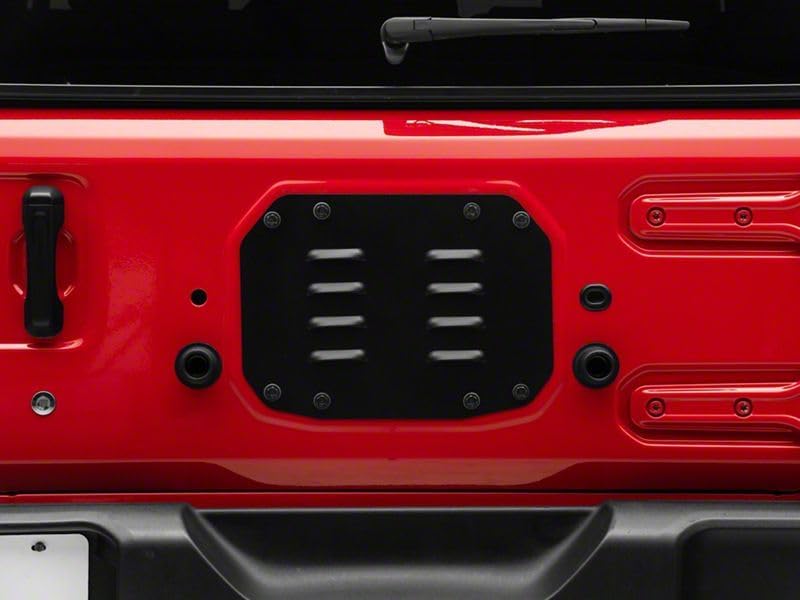 Cleaner Appearance. If you have opted to remove your 2018-2023 JL's factory spare tire and mount, you’ll be left with an unsightly hole in the tailgate. To clean up the appearance of your ’s tailgate, you'll want to install a RedRock 4x4 Spare Tire Vented Delete Plate. High-Quality Construction. RedRock 4x4 manufactures their Spare Tire Delete Plate from heavy duty, hot rolled carbon steel plate for superior strength. Completed in a high-grade, textured black powder coated finish, this RedRock 4x4 Spare Tire Delete Plate will last a lifetime.Simple Installation. RedRock 4x4 designed their Spare Tire Delete Plate to bolt directly in place of your Jeeps factory spare tire mount. There is no cutting or modifications required for a clean, straight forward install. Reusing the original factory spare tire hardware and basic hand tools, installation can be completed in about 15 minutes.Application. This RedRock 4x4 Spare Tire Delete; Vented is designed to fit 2018-2023 Wrangler JL models, Excluding 4xe.