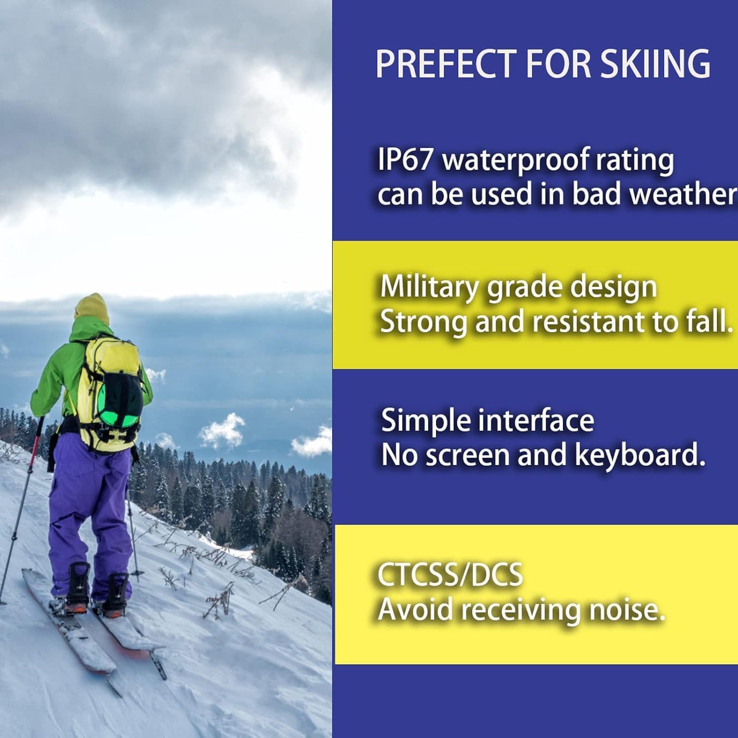 | Additional Features | 1100 mAh battery rechargeable, 2 way radio long range, License free walkie talkie, ip67 waterproof military grade walkie talkies, professional two way radio |