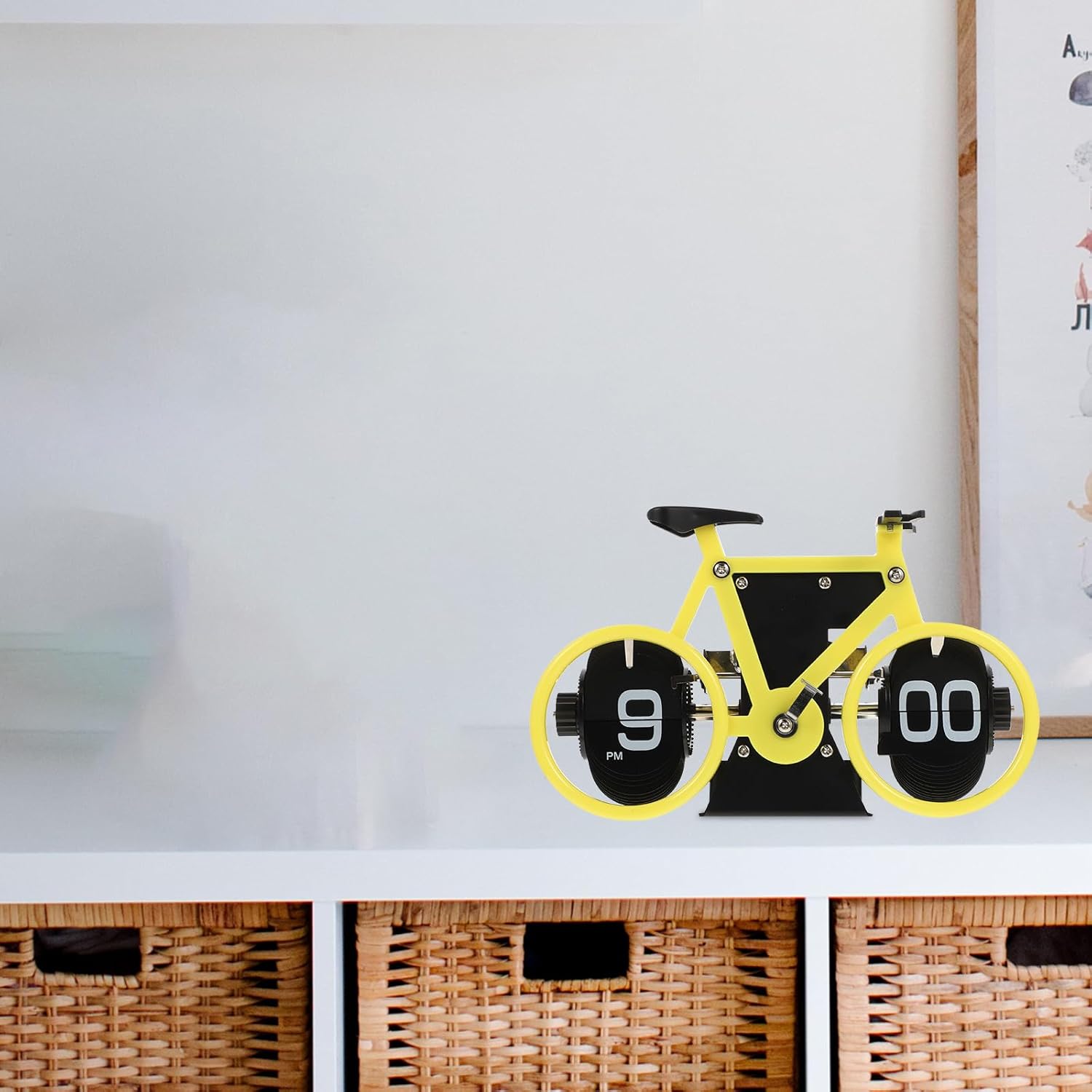 Package Include 1 clock Features -Product Info:Bicycle page turn clock -Material:ABS, metal, PVC -Color:Yellow -Note: The clock is powered by 2 AA batteries. (Not Included) vintage bicycle -Size:20.00X12.50X7.00cm/7.86X4.91X2.75in - The bicycle flip clock is perfect for restaurant, coffee shop, office, bar and home decor, multiple occasions suitable vintage clock. - This item is not just the flip clock, and it's also a work of art to decorate the table, worthy of your own bike clock. - Such a bicycle shaped clock can be a perfect gift for your or friends who both love bicycle and clock retro clock. - The bicycle shaped clock can stand on the desktop stably, not easy to turn off, practical to use small decorative clock. - The made flip clock is not easy to crack or deform, can be used for long time.Goods Informationclock bicycle This tabletop flip clock ornament adopts elaborate and vintage bicycle shape, and made of , and practical.auto flipping clock This vintage style clock designed with delicate details is suitable for desktop decoration.flip clocks Simple and , a good gift for friends and family members
