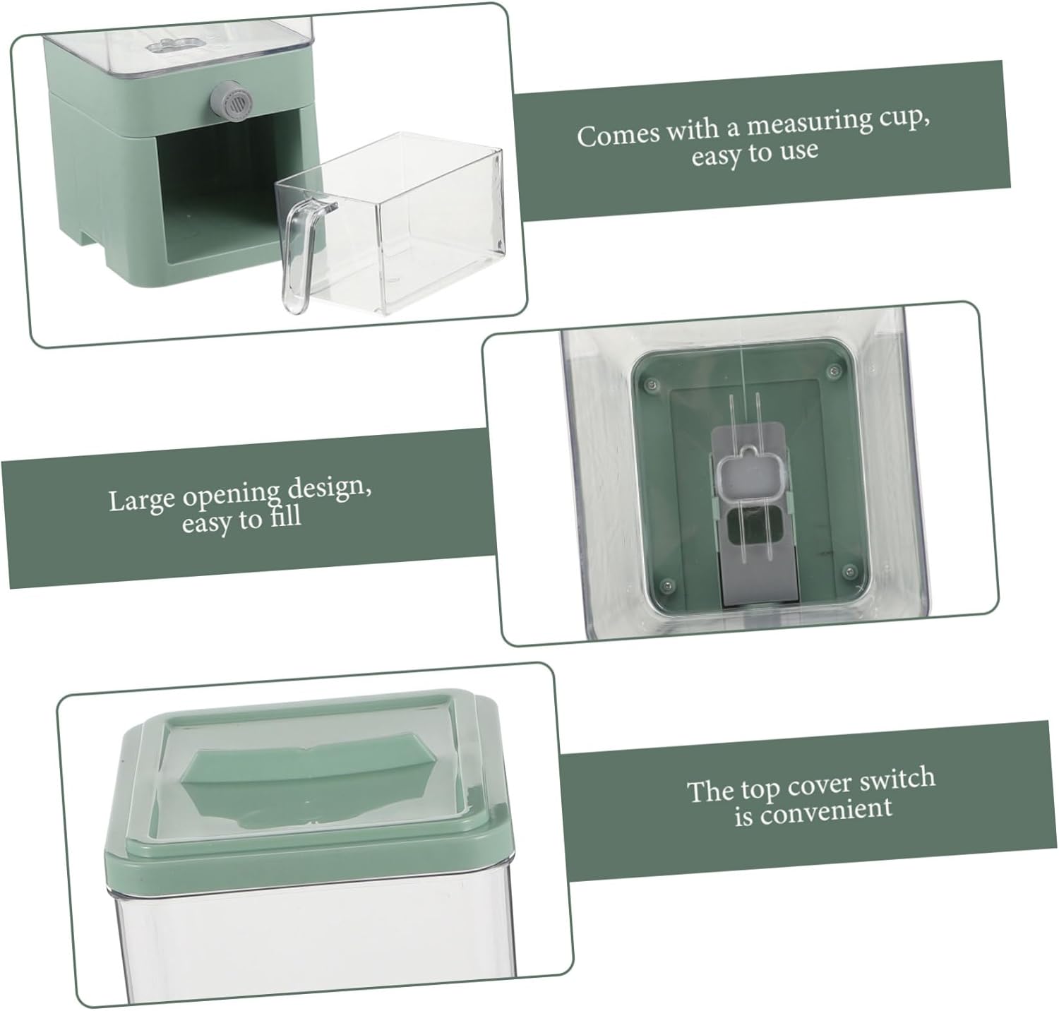 Package List 1 x Rice Bucket Features - Color: Green rice dispenser countertop -Material:PET,PP modern rice dispenser Volume: 3.75L lentil dispenser - Size: 33.50X15.50X13.00cm/13.17X6.09X5.11in food storage container - Easily fits above or under your kitchen counter or cabinet. The color matching is simple and beautiful cereal dispenser pantry. - Adoption of simple and convenient design, this product also can be used for a long time rice dispenser for countertops. - Come with transparent design, allowing you to know the stock of rice and supply time container for food. - Large capacity design function. Perfect and excellent for kitchen use. Suitable for storing cereal, rice, grains, beans and so much more rice grain dispenser. - Professional ergonomic design concept, when in use, feel comfortably and experience excellently grain organizer dispenser.Goods Descriptionfood storage jar dispenser Fine workmanship practicality and durability.grain dispenser kitchen Are you looking for a professional and rice dispenser? , ! Our rice dispenser must meet your needs.lentil dispenser This rice container is made of sturdy PET and PP material, and sturdy for use