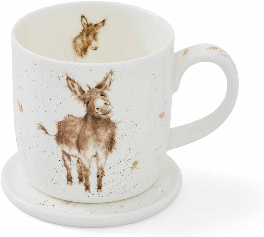 Product Description Wrendale's 'Gentle Jack' Mug & Coaster Set features a watercolour illustration of a cute Baby Donkey.Made from Fine Bone China the Mug has a capcity of 11fl.oz/310ml and the Coaster measures 10cm x 10xm.Microwave and dishwasher safe. Set Contains: 1 x mug & 1 x coaster