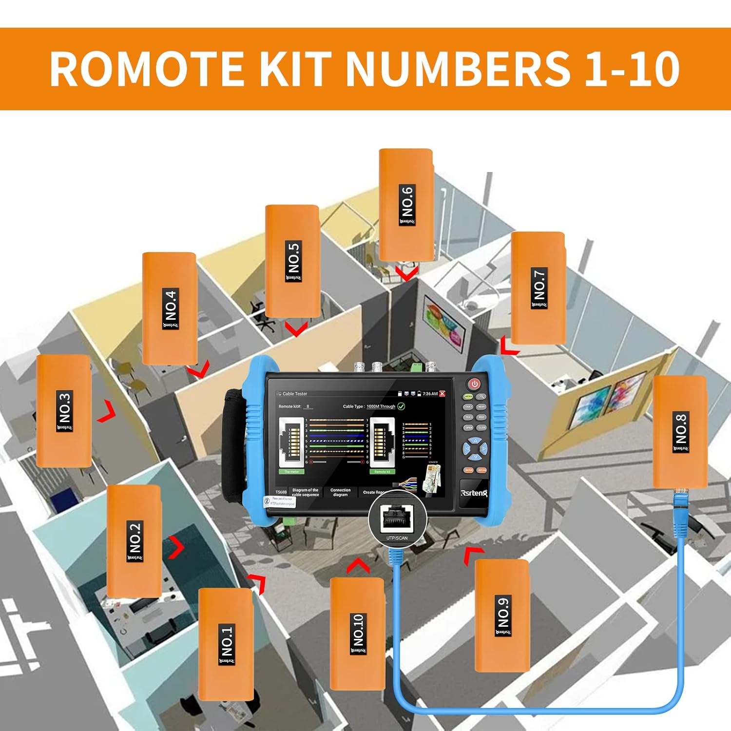 Rsrteng In order to meet the needs of cctv camera tester, we launched network cable tester remote kits NO.1 to 5, NO.6 to 10. Also, if you need more, you can choose to b-u-y NO.1 to NO.10. Cable tester remote kits is convenient for worker to test multiple cables at one time in security maintenance and network engineering, and can test up to 10 cables. Reduce testing time and improve work efficiency.