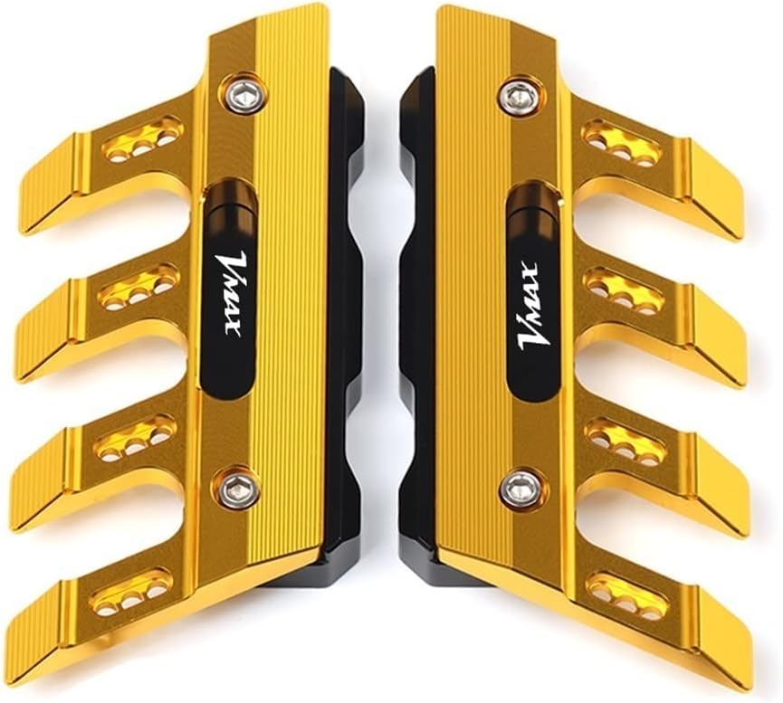 ★ Please be sure to check the compatible model and year when purchasing.★ Detailed specifications and instructions for the product are not included.If you are worried about installation,please leave it to a professional for installation.For Yamaha VMAX 1200 V-MAX Motorcycle Fall Side Guard Front Fork Protector Front Fender Protection Block Side Guard CNC Aluminum <;; Quantity: 1 pair (left and right )(Includes mounting bolts)<;; Colour:grey , Black , Gold , Red , Blue , Green , orange. <;; Material: with 6061-T6 aluminum by CNC, with smooth appearance and full sense of lines! the color is full and does not fade, and the appearance of the motorcycle is improved. ★ Fitment for:For Yamaha VMAX 1200 V-MAX ★ Product Features: Stylish appearance, strong material, but also to protect the front fender to avoid some damage★Tip: Simple and non-destructive installationFree installation tools, put them in directly,using the tool to tighten the screws to complete,1 bolts or 2 boltson can be mount .Please confirm that there are 1 or 2 bolts on each side of the front fender of the motorcycle, which can be installed, but cannot be installed without bolts.Due to lighting effects and screen, the color tone in the photo may be slightly different from the actual product, the allowable measurement error is 1-3 mm.