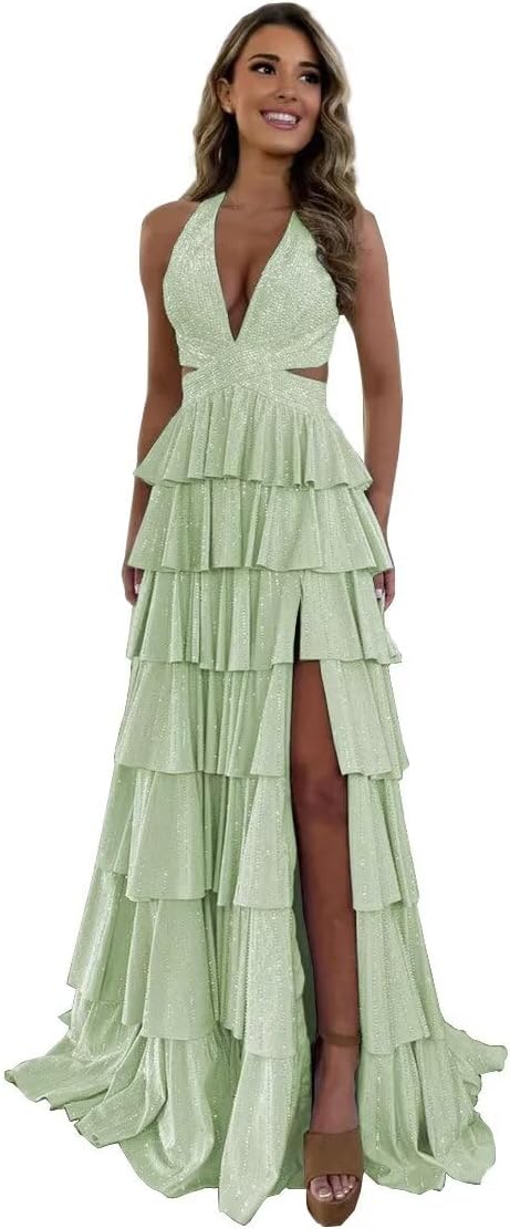 welcome to the Our store! please hand wash in cold water or dry clean,wash it with low temperature and iron carefully in low temperature Sequins V Neck Long Prom Dresses is your good choice fabric: Sequins neckline: V Neck silhouette: Slit sleeve: Halter length: Floor length closure: lace up back if you want the dress to be customized,please provide us the following measurements. 1. bust___inches 2. waist___inches 3. hips___inches 4. hollow to floor ___inches 5. height(without shoes)___inches 6. the date you need the dress:____ we provide customers with 24 - hour online consultation service. if you need any help, you can contact us at any time.