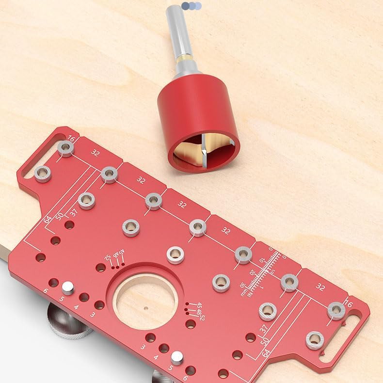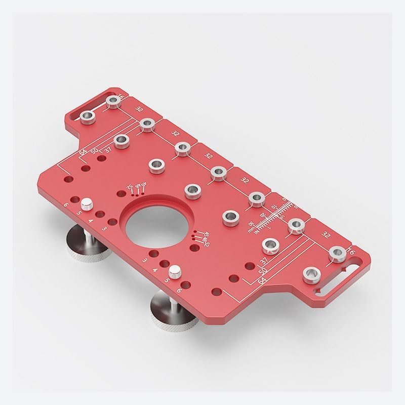 Specification: Item Type: Shelf Pin Hinge Jig Material: Aluminum alloy Use: Cabinet door hinge hole positioning 4 Sizes Hardened Steel Drill Bits: Approx. 6mm / 1/4in, 5mm / 0.2in, 2mm / 0.08in, 35mm / 1.38in Distance: Approx. 37mm / 1.46in, 50mm / 1.97in, 64mm / 2.52in Distance From Hole To Wood Panel : Approx. 3 ~ 6mm / 0.12 ~ 0.24in Hinge Screws: Approx. 48 x 6mm / 1.89 x 0.24in Approx. 45 x 9.5mm / 1.77 x 0.37in packing list: 1 x Hinge Drill Locator Main Body 1 x 35mm Hole Opener 2 x 2mm Drill Bit 2 x 5mm Drill Bit 2 x 1/4in Drill Bit 1 x Pin Rod 1 x Depth Positioning Ring 1 x Positioning Cover 2 x Positioning Clamp 2 x Wrench 1 x Hole Opener Storage Box 1 x User Manual