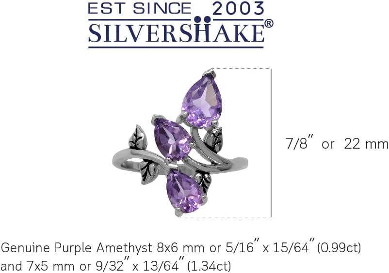 Silvershake 2.33ct. 3 Stone Natural Amethyst 925 Sterling Silver Bypass Leaf Ring