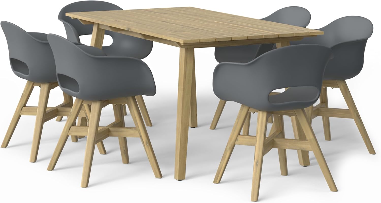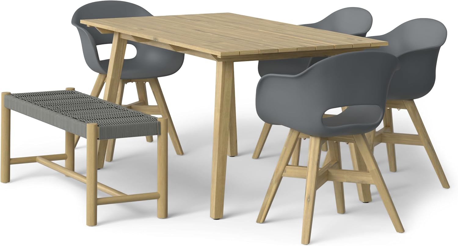 Sold as a set of 2, the Kona Outdoor Dining Chairs are lightweight enough to easily carry anywhere they’re needed and are handcrafted with sturdy materials. The solid acacia wood bases have sturdy legs with crossbar supports for excellent stability. Deep bucket seats in molded plastic will surround you with comfortable support.