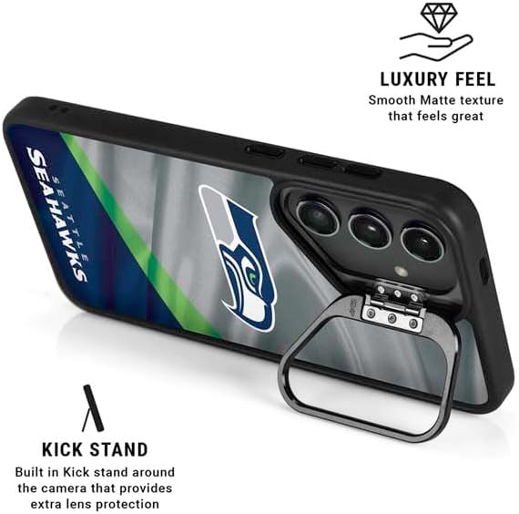 The NFL Seattle Seahawks Kickstand Case compatible with Galaxy S25 is the ultimate in versatile protection and convenience. Featuring an innovative lifted camera ring with a built-in stand, it allows hands-free video watching with adjustable angles from 0 to 150 degrees. This premium Seattle Seahawks Case supports wireless charging and is fully compatible with MagSafe, offering a sleek design without compromising on durability or functionality.