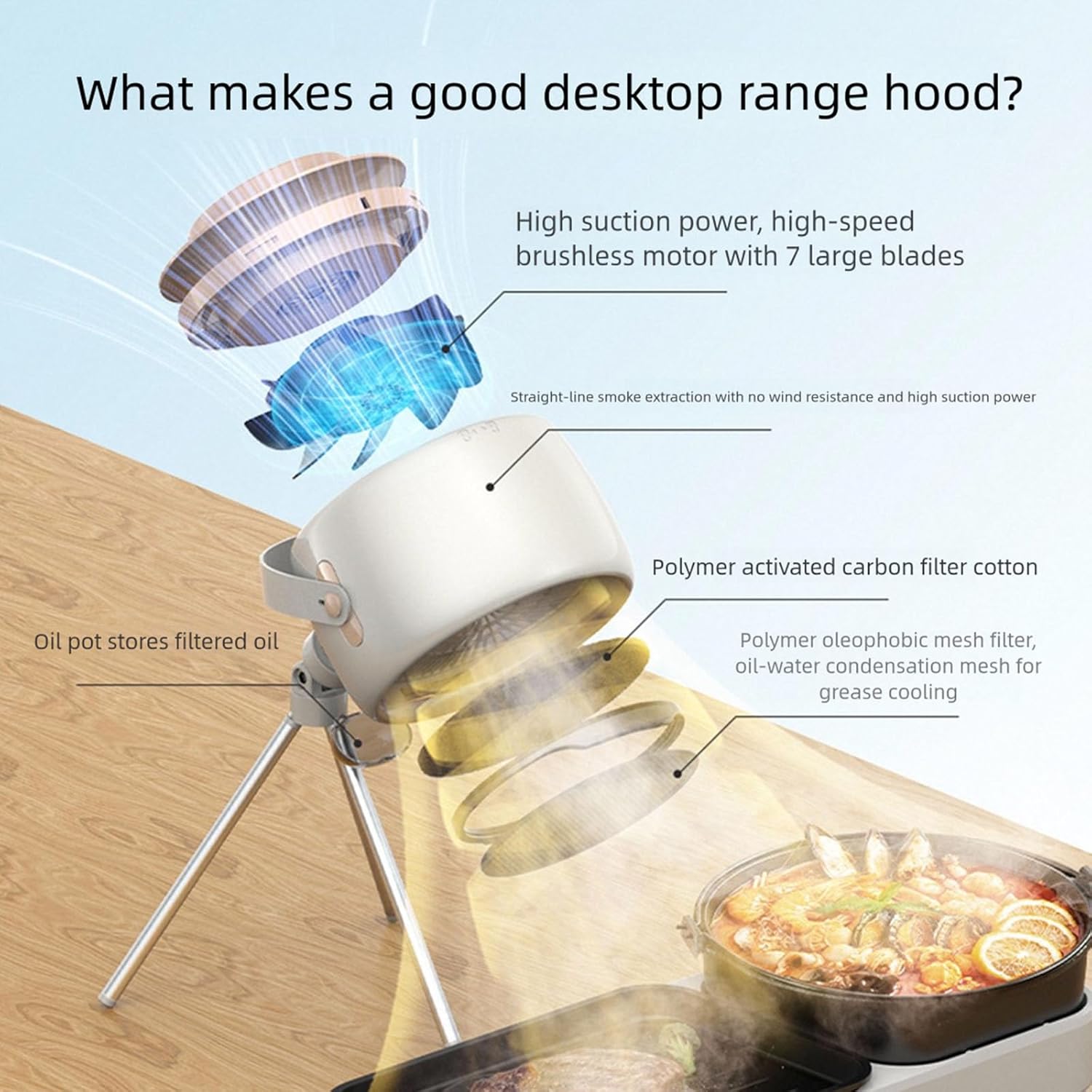 Small Desktop Cooking Exhaust Featuring Strong Air Circulation Design And Detachable Oil Screen Features: Efficient double Fan Design: This portable kitchen ventilator features an innovative double fan circulation approach that effectively removes cooking aromas and flying particles, keeping your pleasant during meal preparation Removable & Washable Filter Parts: Includes sturdy metal grease and replaceable scent reducing fabric panels for easy maintenance ( fabric replacement suggested based on usage frequency) Flexible Power Connection: Works with direct power supply using a Type C charging cable, providing continuous kitchen air movement without battery limitations Adjustable Placement preferences: Comes with detachable mounting brackets featuring 90 degree rotation function for flexible installation in various locations from outdoor cooking spots to home kitchen areas inherent Controls & Quick Charging: Provides 1 5 adjustable settings operated by two switches, reaches complete fee in approximately 2 hours 16 minutes, with visible indicators displaying charging progress Specifications: Product name: extent hood Product potential: input direct current 5V / Product power: ≤30W ( specific power depends on actual usage) Function gear: wind gear 1-5 cyclic Battery capacity: None Power supply approach: plug in through charging cable Package Includes: Host Tripod Type-C charging cable Note: Before using the accessory, please check it is compatible Pay attention to the storage methods