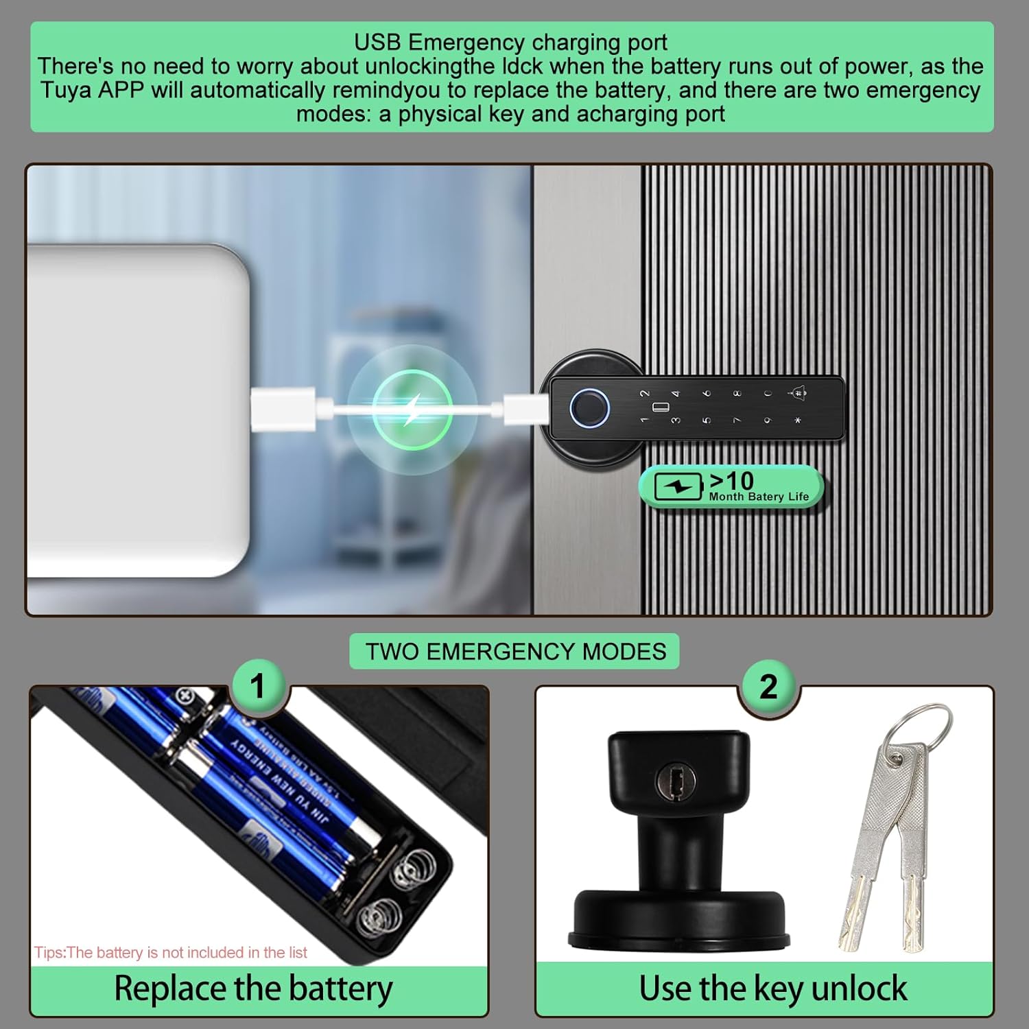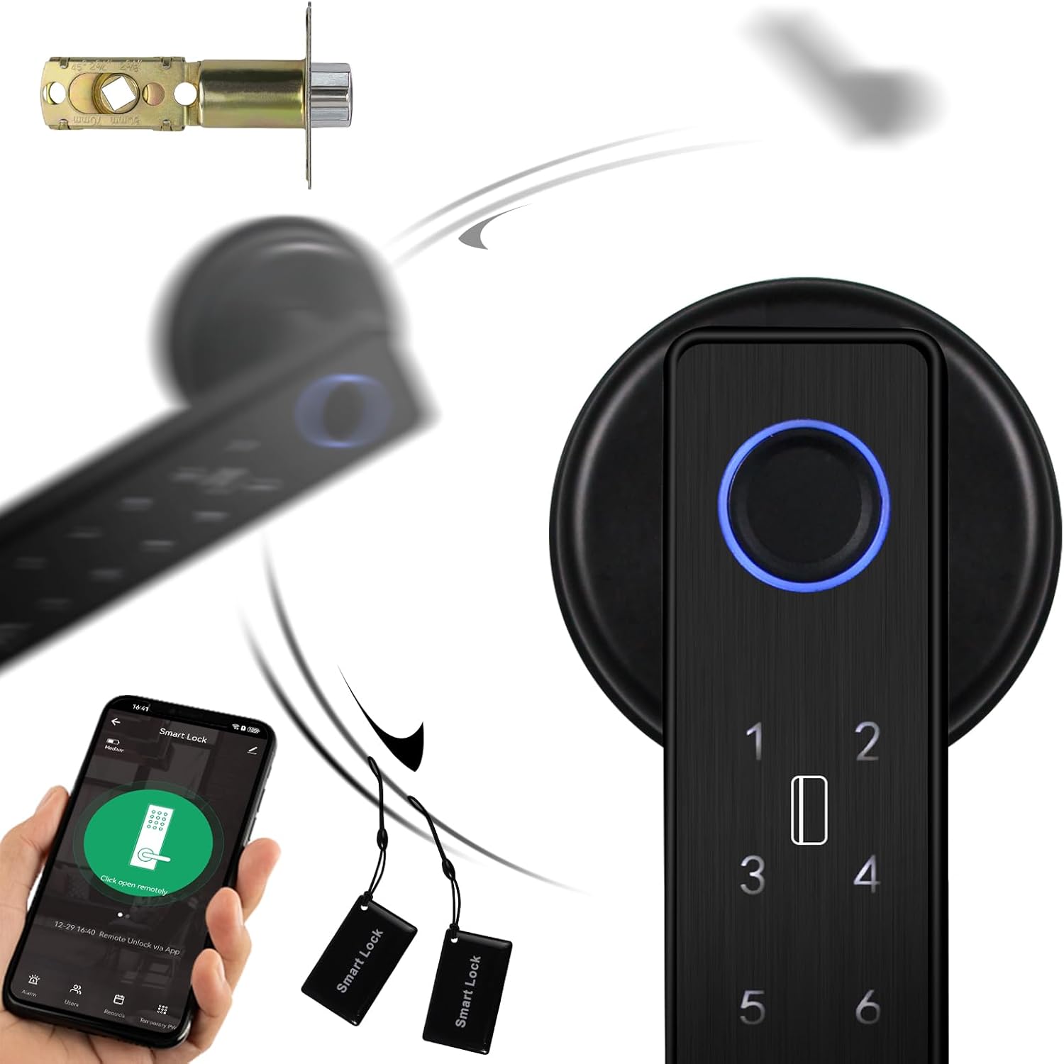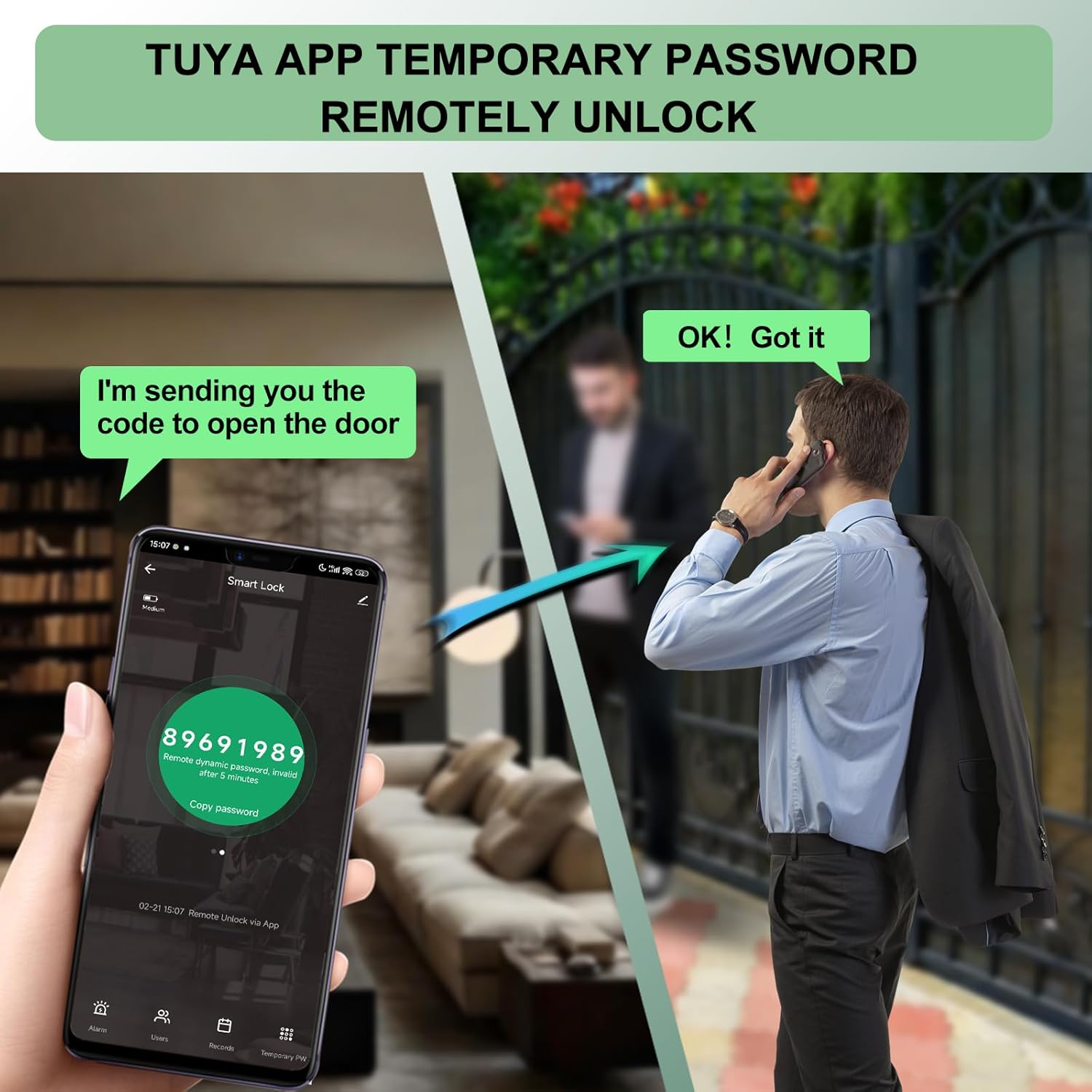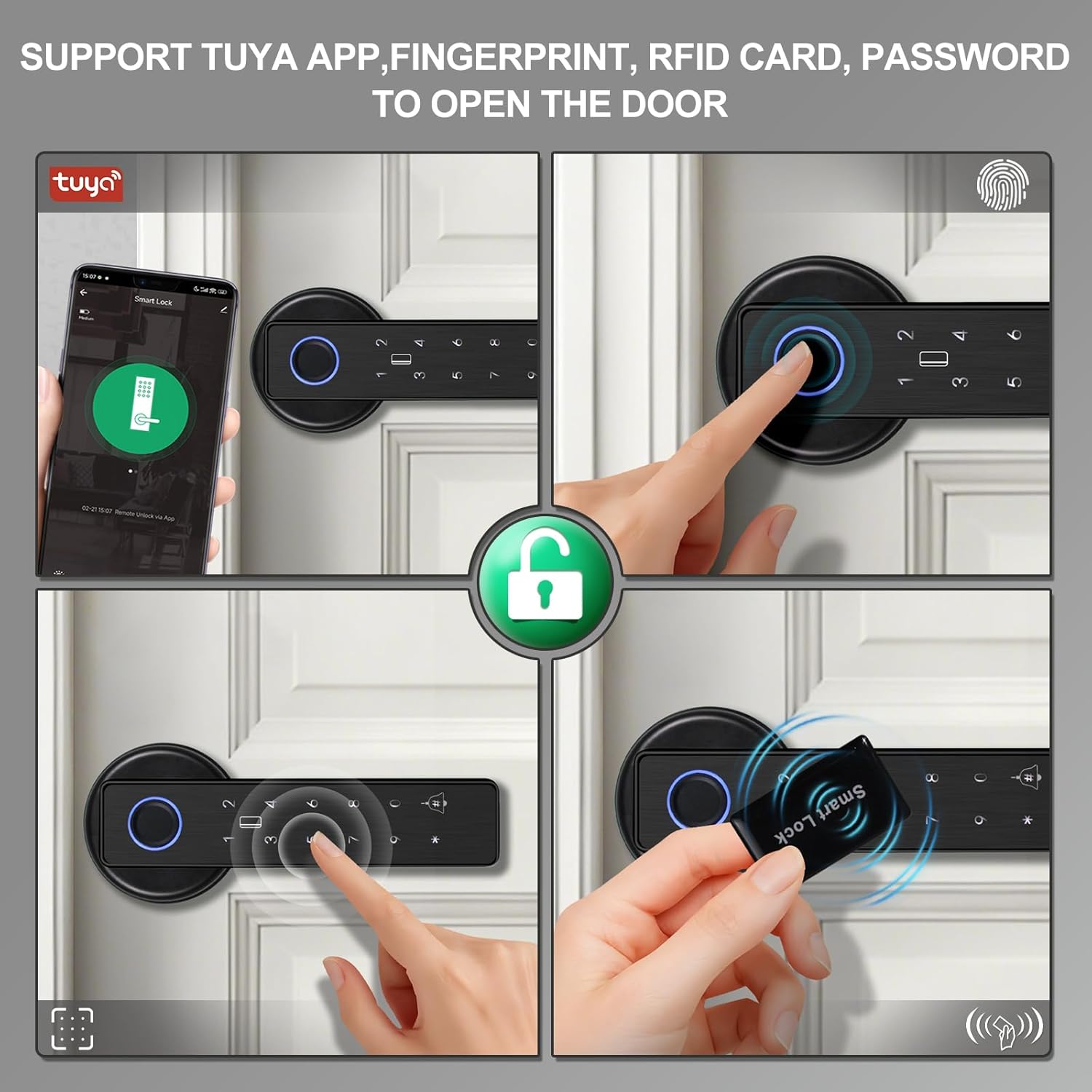• 【Five Multifunctional Unlocking Methods】Supports remote unlocking via Wifi Tuya APP, fingerprint, RFID card, digital password, and mechanical key. The APP allows for one-click viewing of unlocking logs, giving you complete control over entry and exit status.