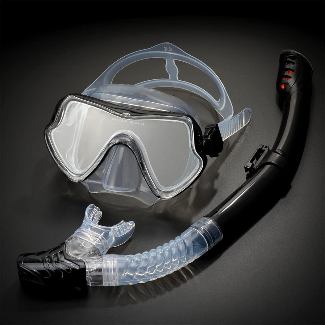 ✤✤PROFESSIONAL ANTI-FOG & ANTI-LEAK DESIGN: Separate inhaling and exhaling channels stop the top snorkel mask from fogging up, and anti-fog coating on the lens and anti-fog inserts guarantees anti-fog effect; Advanced leak-proof silicone sealing mask with floating ball prevents salty water from entering in mask✤✤Easy-to-adjust buckle system: This mask features a simple push-button adjustable buckle system that easily adjusts the belt for almost any adult size face, ensuring a waterproof seal that allows you to swim, dive or snorkel Enjoy hours of fun ✤✤Low volume design: Low capacity means the mask is easier to clean, reduces buoyancy, and opens up new adventures throughout the water and rain. This mask is made with only top-quality materials✤✤THE LATEST SAFETY BREATHING MECHANISM - Fresh air enters the snorkel mask from the breathing tube, and carbon dioxide is discharged from both sides of the face. The air inlet channel and the air outlet channel are separated from each other. Exhaust gas does not flow back, and breathing is smoother and healthier✤✤The tempered glass lens is not easy to fade! Always want to be safe! Even the impact of the furthest or heaviest object will not break or break the lens in this mask, providing better protection for your eyes✤✤This diving mask features an adjustable swivel buckle for quick adjustment for athletes and divers of different face types.The mask has an adjustable strap that is easy to operate, adapts to a large number of facial types, and is lightweight and ideal for free diving✤✤100% risk-free satisfaction guarantee - we offer 100% Risk satisfaction guarantee, so you can buy with confidence. However, we are pretty sure that this snorkeling mask will make you a great joy in swimming, snorkeling or diving trips