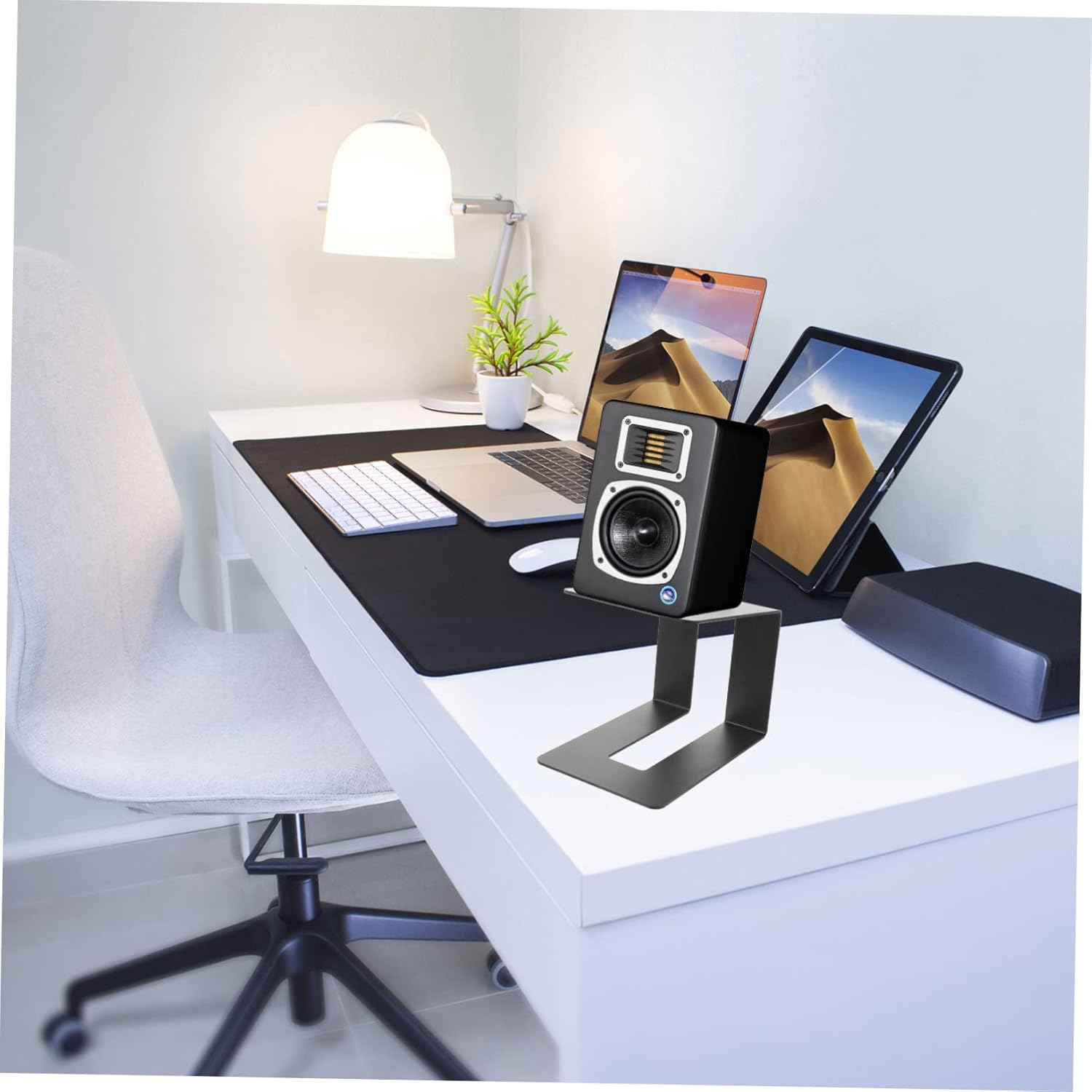 Package Include 1 x desk speaker stand Features -Material:Metal desktop speaker stand -Size:13.00X18.50X15.00cm/5.11X7.27X5.89in mini speaker stand -Color:Black desktop speakers rack - This speaker stand not only elevates your speakers, but also frees up a little space on your desk. short speaker stands - Using a speaker stand, this has the advantage that you don't transmit the entire range of resonance through the stand base, but rather insulate it from the table desk mount speaker stand. - The universal size fits speakers, and stand is strong enough to support speakers without tipping over accidentally monitor speaker holder. - Oxidized black treatment a clean modern look, this speaker stand is a nice tool for you speaker bracket. - Tilting at a small angle provides better sound and helps the listening experience by positioning at the suitable height for better sound desktop monitor speaker stand.Goods Informationdesk monitor speaker stand Stable structure, workmanship, speaker stand is reliable in use.computer speaker stands Still looking speaker stand? Still looking simple and practical fix your speakers? If so, our speaker stand will definitely meet your needs