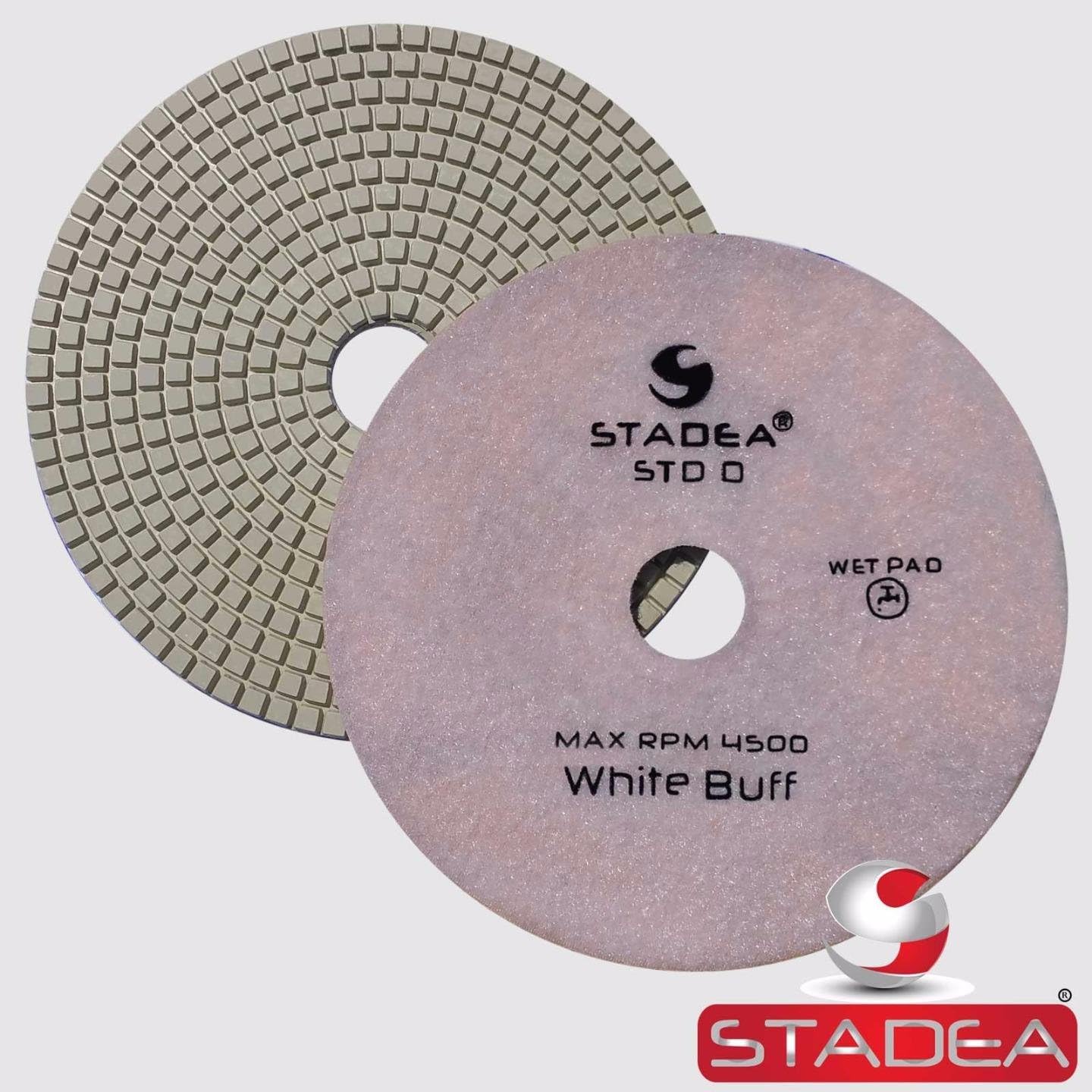 Stadea Series Standard D, Diamond Polishing Pads Set of 8 diamond polishing pads for Marble Concrete Granite Terrazzo floor Quartz polishing. It is designed for artificial and natural stones floor polishing. It is effective on Marble, Concrete, Terrazzo, Granite, Quartz, and other stone polishing resulting in high gloss shine. It works great for Marble polishing, concrete polishing. It has one piece polishing pads for each grit 50, 100, 200, 400, 800, 1500, 3000, Buff About Stadea STADEA offers industrial diamond tools, power tools and range of tools accessories. STADEA is a rapidly growing brand known for its quality tools for stone fabrication, manufacturing, cutting, grinding, polishing such as diamond polishing pads hole saws floor polishing pads router bit profile grinding wheels and more! STADEA is one of the preferred choices for concrete stone fabricators and manufacturers for Its top notch quality and competitive pricing. STADEA is registered trademark of ePortal LLC, Santa Clara CA
