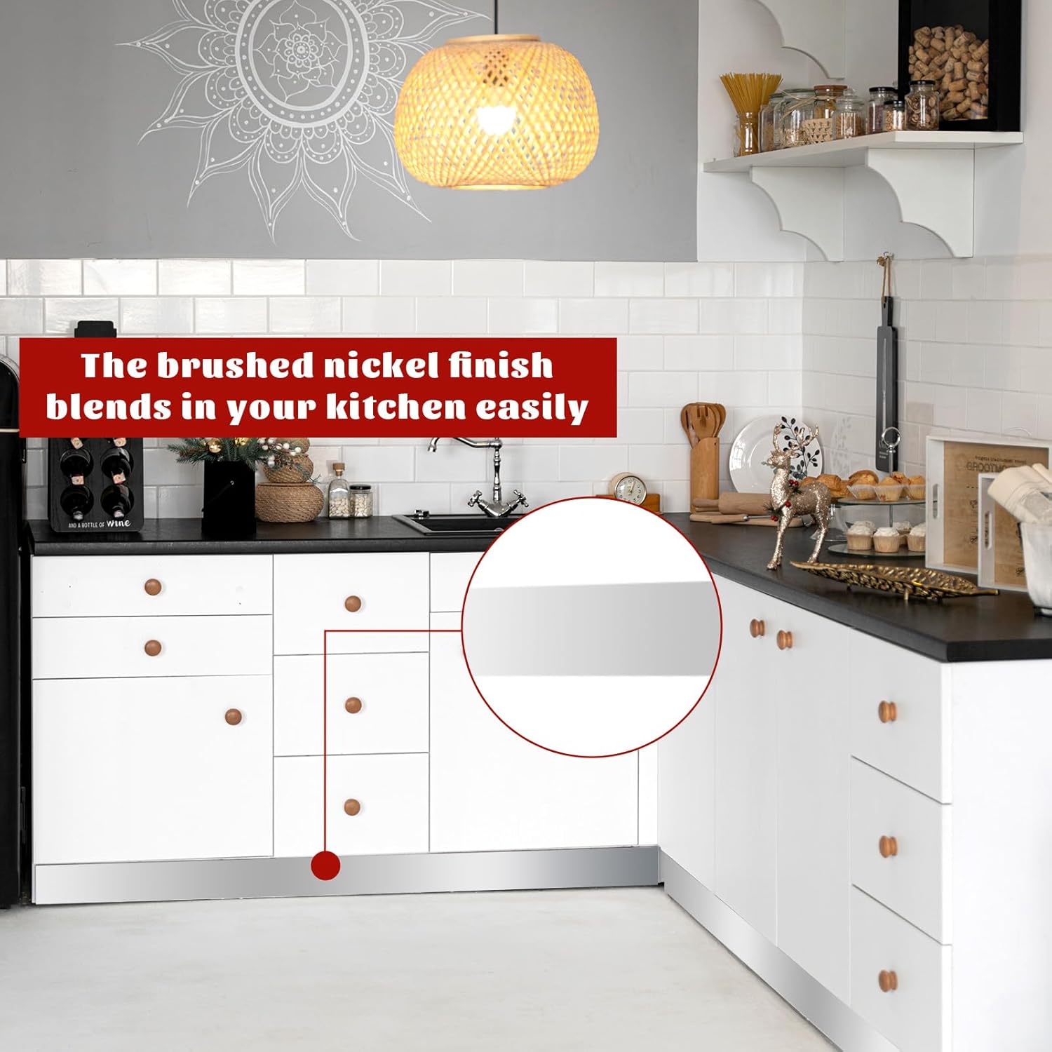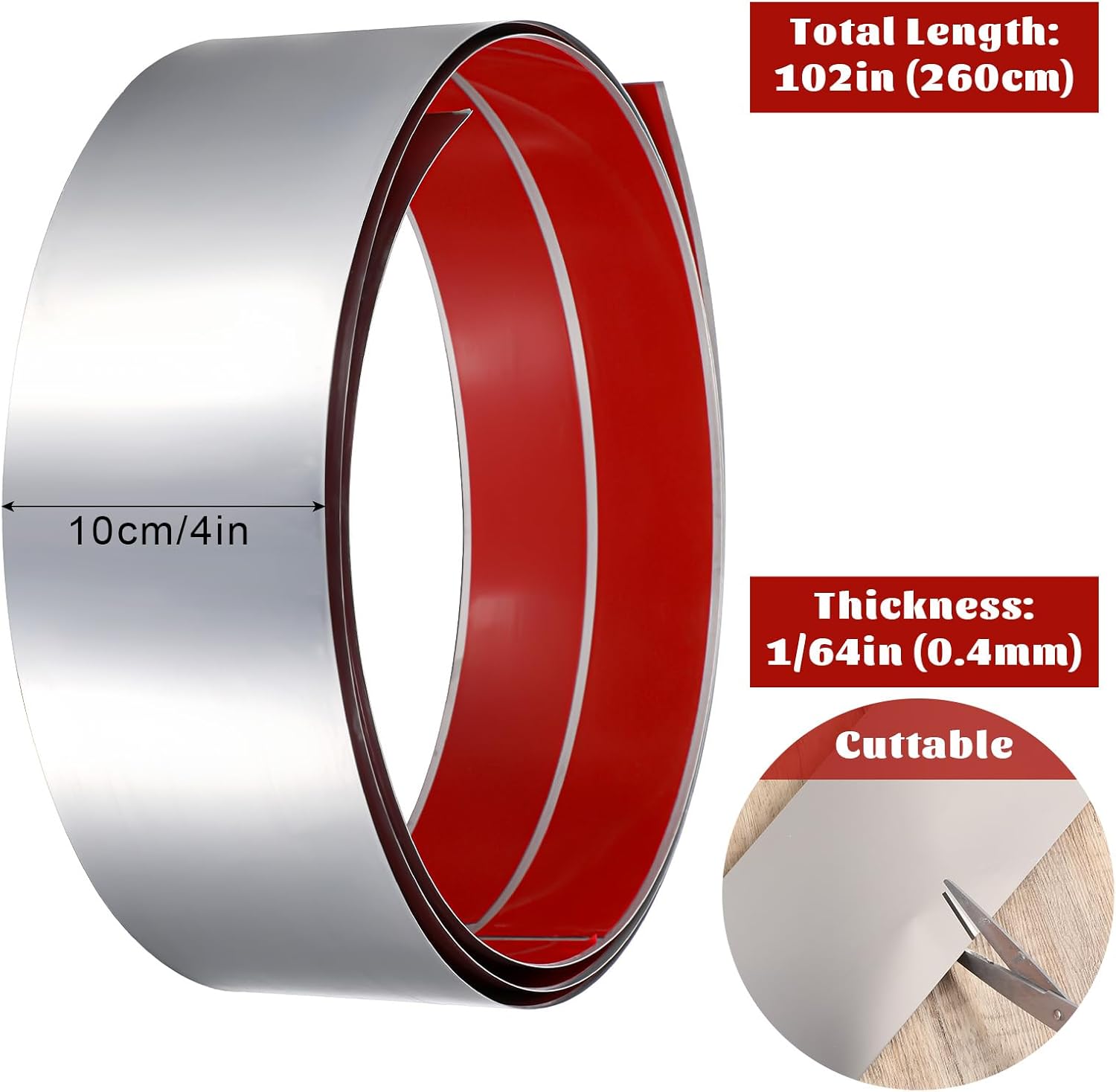 Features: Elevate the style and functionality of your kitchen, bathroom, or living space with this sleek and versatile stainless steel toe kick cover. Measuring 4" x 102", this self-adhesive baseboard plate seamlessly blends with your cabinetry, providing a clean and polished look. Main material: Notes: Manual measurement, please allow slight errors on size. The color may exist a slight difference due to different screen displays.