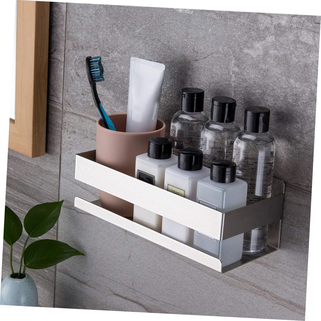 Package Include 1 x wall storage shelf Features - Material: Stainless steel metal wall shelf. - Color: Silver stainless steel wall shelf. - Size: About 23.00X10.00X8.00cm/9.04X3.93X3.14inch bathroom wall shelf. - Suitable for bathroom, kitchen and other place you need bathroom metal shelf. - Punch free design, easy to install, no need other tools wall storage shelf. - Breathable design is easy to dry and easy to clean it kitchen metal shelf. - Make your toiletry in order and you can easily take wall storage rack. - High fence design will prevent items from falling shower rack.Goods Descriptionwall storage shelf want to buy a bathroom organizer rack or kitchen organizer rack? Help you keep messy things in order.shower metal shelf You shower gels, bottles in a tidy way.metal wall shelf With modern appearance, suitable for you to storage your items in an organized way.bathroom metal must be one of your