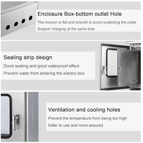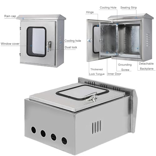 Enhance your outdoor electrical safety with our Stainless Steel Electrical Enclosure Box, designed for versatility and durability in various environments. This waterproof and weatherproof junction box offers reliable protection against outdoor elements, UV damage, and extreme weather conditions, ensuring the longevity of your electrical installations. Featuring a transparent viewing window, you can quickly check the wiring status without the need for complicated disassembly. The thickened sealing strip provides robust IP65 protection, effectively blocking water and dust from entering the enclosure. Additionally, strategically placed side cooling holes facilitate heat dissipation, preventing overheating and ensuring optimal performance for your electrical systems. Our enclosure box is equipped with threading holes that come with insulating sleeves, simplifying the wiring process while protecting your cables from wear and tear. The high-strength hinge and reinforced lock system guarantee easy access while enhancing security and reliability for long-term use. Moreover, the detachable backplane streamlines installation, making it a hassle-free addition to your project. Available in multiple sizes to meet your specific needs, this multifunctional outdoor protection box is ideal for a range of applications, including solar panel wiring in your backyard, protecting control systems in factories, temporary power installations at construction sites, and managing outdoor lighting or HVAC controls in commercial and residential projects. Invest in our Stainless Steel Electrical Enclosure Box for a secure, efficient, and easy-to-use solution that meets the demands of any outdoor electrical task.