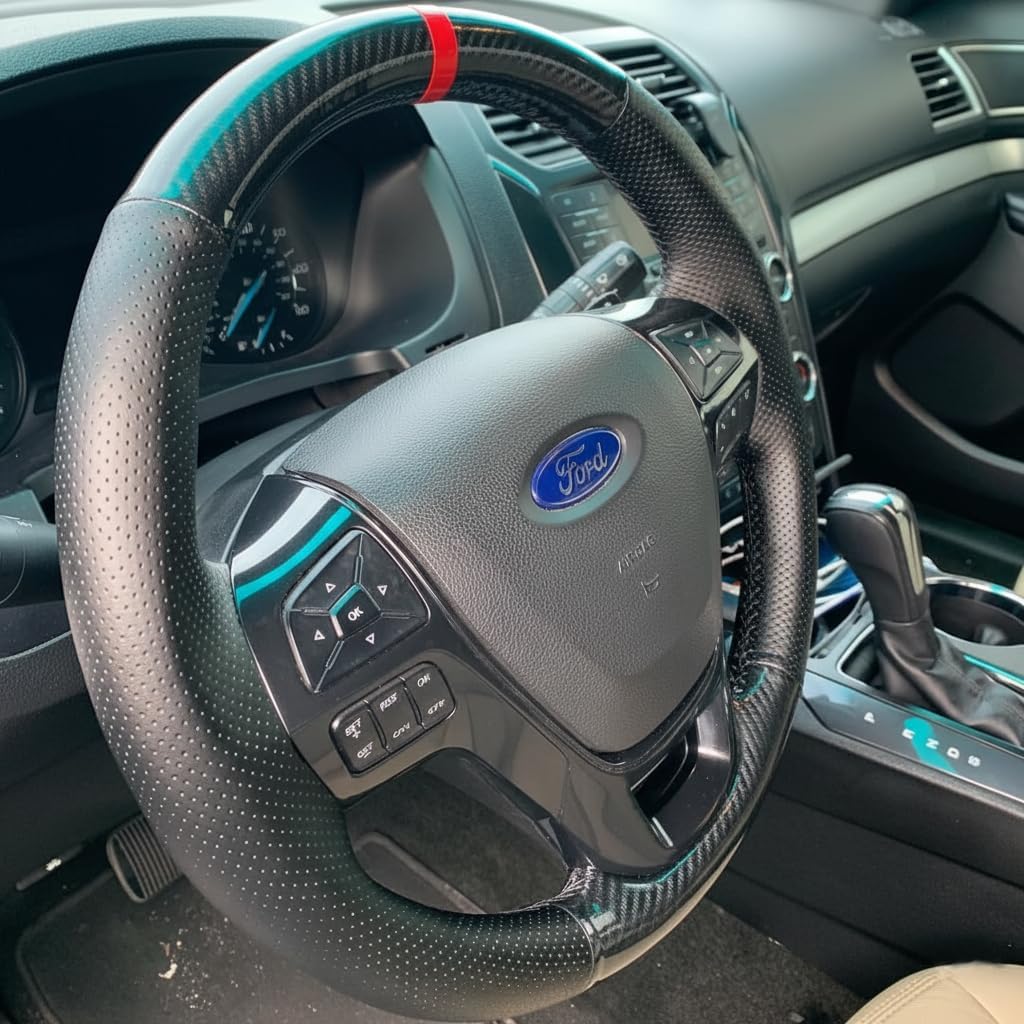 Insulates against temperature extremes and adds a sporty feel. Top-grade leather provides an attractive appearance, is durable and feels good. Specially tested to resist fading and shrinking to look good year after year. Lacing hole reinforcements ensure a glove-tight factory fit.Exactly suitable for Ford Explorer Base/XLT/ Limited/Platinum/Sport 2016 2017 2018 2019 .Almost all buyer purchased our products left 5 stars positive feedback,but some customer think it's too hard to finish the installation and require the return,it need some patient and time to process it,also we providethe instruction of installation in the package,but professional installation is highly recommended!!Feature:Better comfort: Breathable, soft padding, contour shape and massaging design. Durability: Heat resistant, cold resistant and wear-resistant. Increased safety: A better grip on the wheel gives you more control on the road. Green material: Our products are totally eco-friendly and healthy. Protects your vehicle: Preserve your vehicle’s steering wheel from wear and tear with a soft contour design while also ensuring a safe and secure grip. Protects your hands: Enjoy enhanced control while driving and protect your hands from burning heat and stinging cold, allowing you to focus on the road. Easy to clean: simply wipe down with a damp cloth, water-resistant cover comes clean easily. This item is an stitch wrap which mean you will need to sew this item onto the steering wheel and we can provide video instruction upon request. This item comes with needle and matching thread.