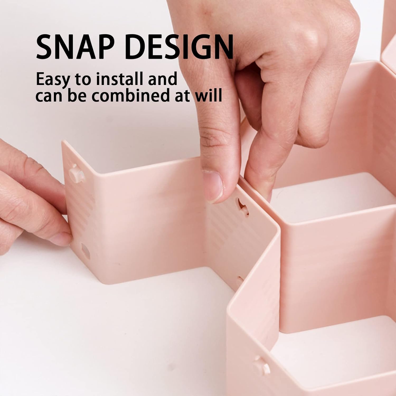 ✨Clean and tidy!! Space saving!! Snap Design!! Snap design, can be assembled into different shapes according to your needs, suitable for any location, very convenient and simple. This storage organizer allow you to organize your clothes by size or type, and they are compatible with any size drawers, let your drawers look clean and neat. Super easy to re-use and clean!High-quality plastic material, hygienic and clean, effectively reduce odor and keep clothes fresh.The clothes drawer organizers are perfect for bedroom, dresser, bathroom, craft room, nursery drawers, reorganize your clothing belongings, such as socks, intimate wear, tie, belt, bras, underwear, and other things, making it easier to select clothes.✨Product Details:Weight:500(g)/1.1(lbs)Material:PlasticColor:Green,White,Gray,PinkWashing method:rinse or wipeSize: Please refer to the size chart, 1cm≈0.39inch35*37*6.7cm/13.8*16.8*2.6in✨Package Including:1*Closet organizer✨Note:The products are all manually measured, there are small gaps, please refer to the actual product.