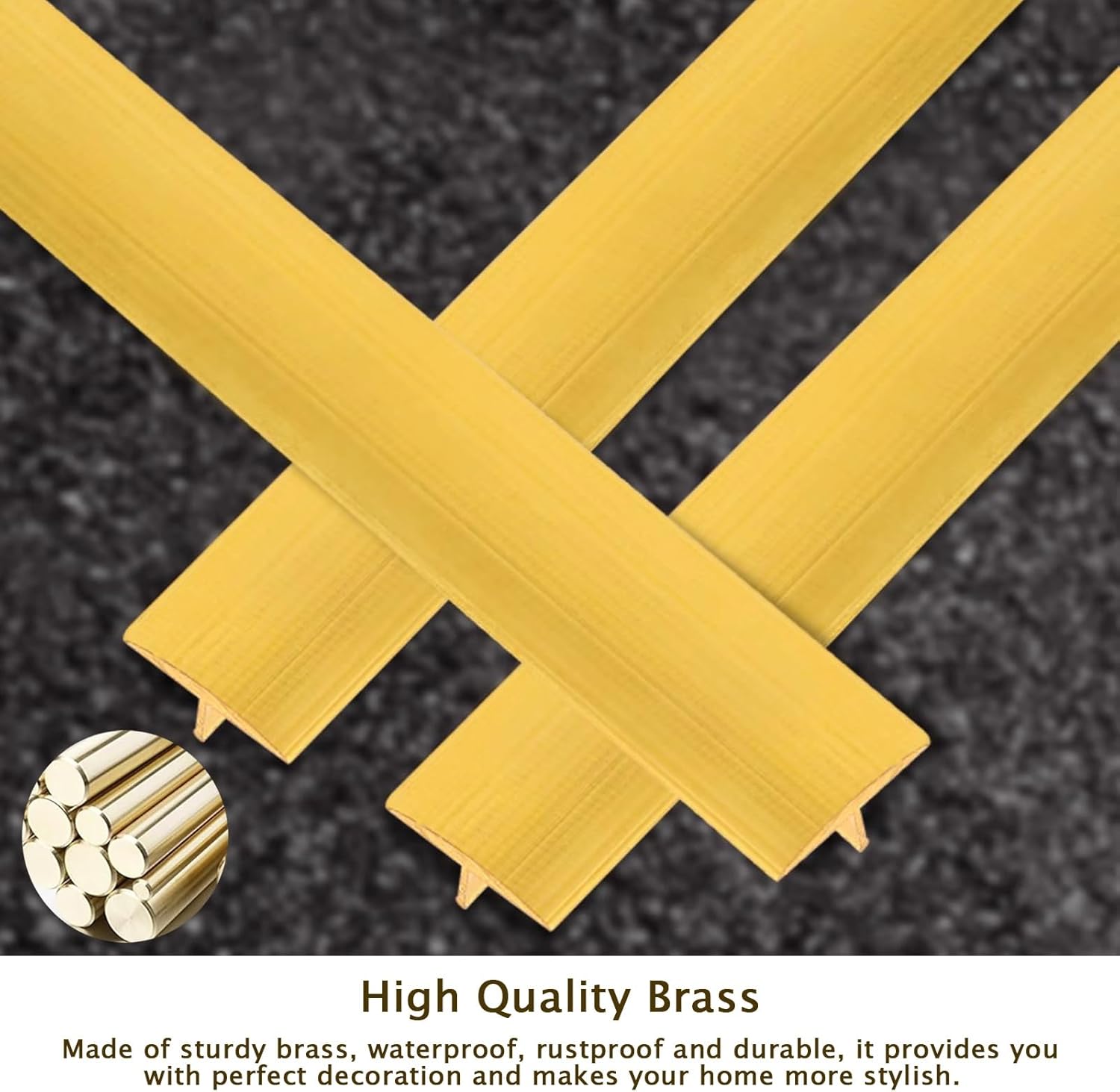 This transition bar is used to cover the joint or gap between two equal-height floor surfaces and protect the floor edges; it can also be used as home decoration.Specifications:- Material: Brass- Length: 1 m (3.3 ft)- Size: Customizable- Cuttable: YesFeatures:- Hidden transitions- You can use it as room decor / divider- Rugged brass material for long service life- No drilling and mounting screws required- Easy cleaning / maintenance / installation- Compatible with different kinds of decoration style- Used for the gap between two floors in bedrooms / living rooms / kitchens / stairsPackaging:- 1 x Floor Transition BarPrecautions:- Please clean the floor before installation- Manual measurement, there will be 1-2 cm error, specific to the actual size shall prevail- Due to the difference of some monitors and light reasons, there may be a slight color difference between the picture and the real thingQuality Service:- If you have any questions about our products, please us by e-mail, we will reply you within 24 hours, to provide you with the most satisfactory solution