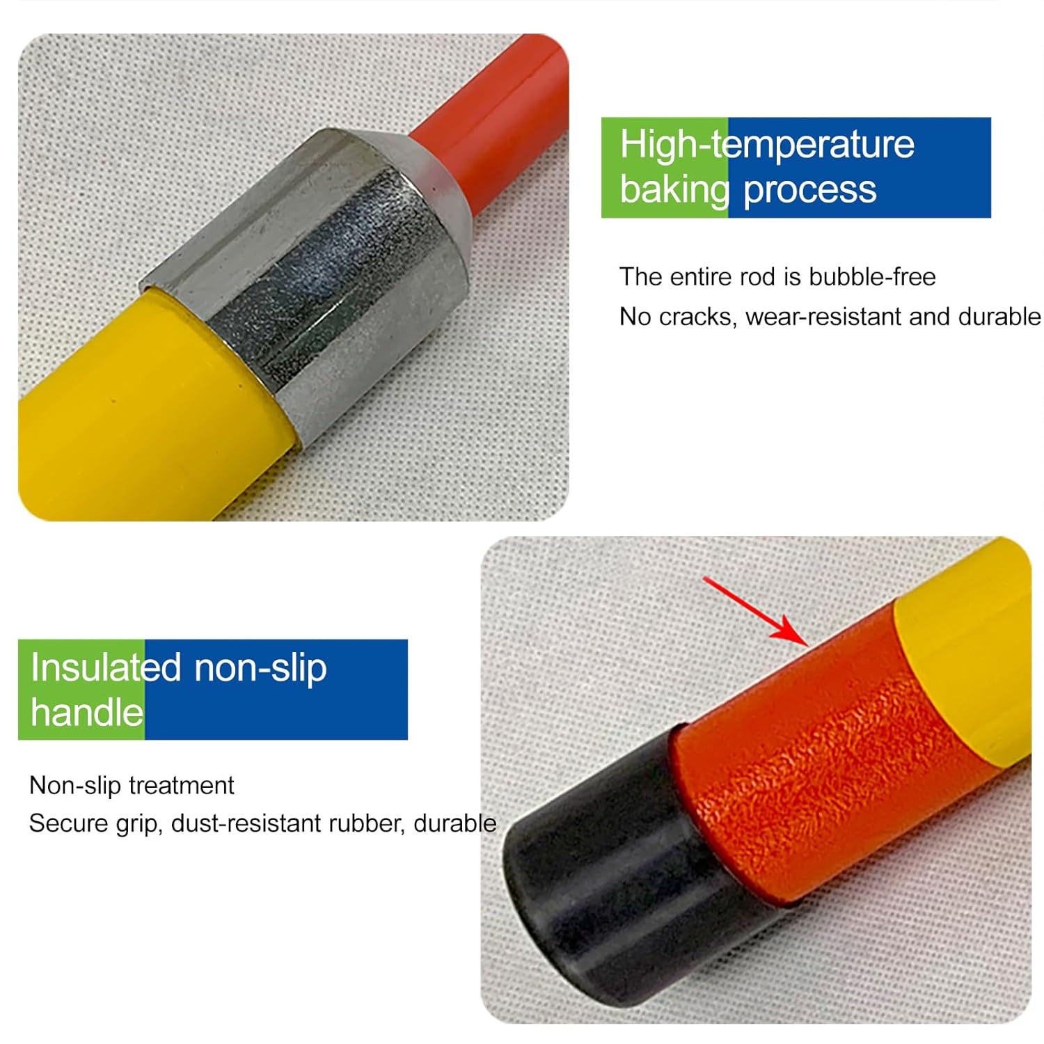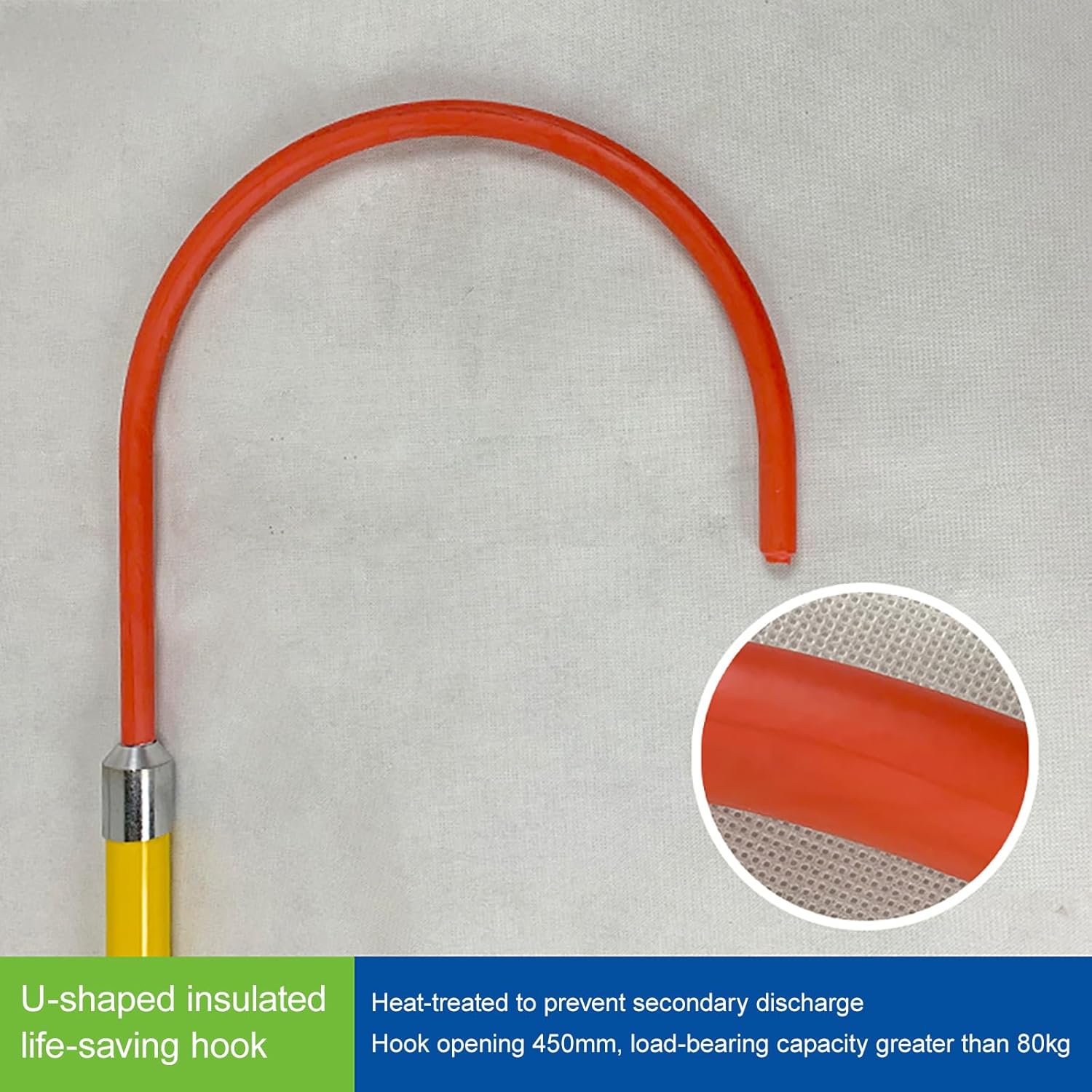 Ensure you're always prepared for dangerous situations with our Insulated Rescue Hook.This essential tool is designed to provide a lifeline to anyone who has been electrocuted or injured. Simply place the hook under your armpit, waist, or other support point to safely pull the victim away from danger.Product Features:* The Insulated Rescue Hook is essential for professionals working in high-voltage environments and is designed specifically for emergency situations in these environments.* Lightweight and compact, it can be stored in a tool box for easy access.* Retractable for long-distance operation.* Handle made of non-slip material to reduce operating errors* Lightweight and high-strength, it meets the demands of long-term rescue operations and provides stable and reliable equipment support for rescue work* Smooth surface without sharp burrs, and every detail reflects the product's user-friendly design considerationsName: High-voltage Insulated Rescue HookMaterial: Fiberglass (Epoxy Resin)Color: Yellow + RedPole Dimensions:1 m/39.4 in/3.3 ft - 2 sections2 m/78.7 in/6.5 ft - 2 sections3 m/118 in/9.8 ft - 3 sections4 m/118 in/13.1 ft - 3 sectionsMain load capacity: Over 80 kg (176 lbs)U-shaped hook opening: 450 mm (17.7 in)Rated voltage: 1 kV-10 kVApplications: New energy vehicle repair, power installation, factories, and residential areas