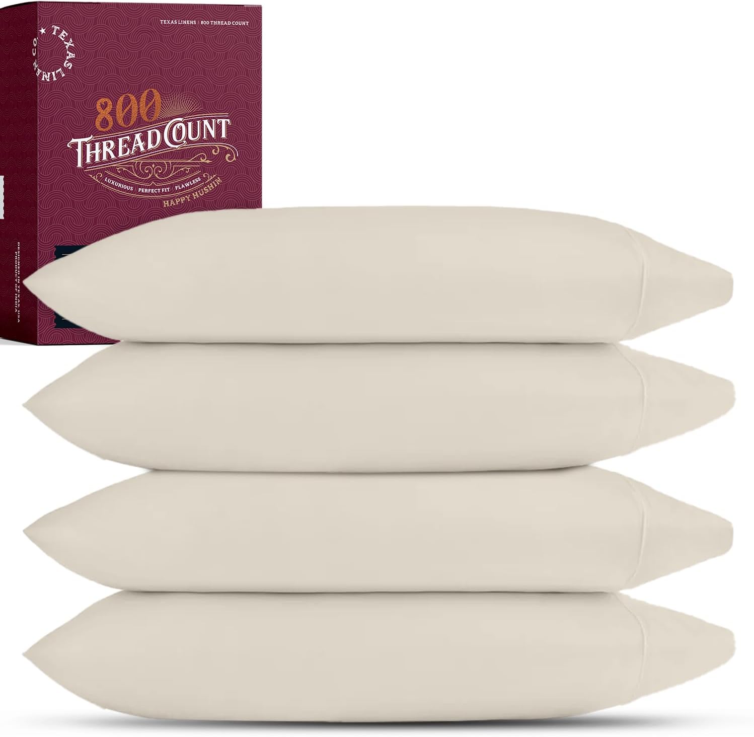 WHAT’S IN THE PACK? Set of Four Standard / Queen Cotton Pillowcases (21’’ W x 32’’ L) (53cm x 81cm) KEY DETAILS: ✔ Authentic 800 threads per square inch for the highest-quality pillow cases ✔ 100% extra long staple Egyptian cotton for improved softness and durability ✔ Finished with a sateen weave for a rich, luminous look ✔ Spacious and oversized pillow cases to fit any pillows ✔ Certified as STANDARD 100 BY OEKO-TEX ✔ Machine washable; do not shrink, fade, or pill OUR SOFT & CLOUD-WEIGHT PILLOWCASES: Woven from the highest-quality 100% extra long staple Egyptian cotton, these 2 pack 800 thread count pillow case sets are softer and more luxurious for the best sleep. Cloud-weight and buttery-smooth, these standard cooling pillow cases set of 4 are loved for their five-star hotel luxury, all-season cooling, and unmatched durability. DESIGNED KEEPING YOU IN MIND: We consider every detail to make our linen stylish and functional for you. Each queen size pillow case set of 4 has a luxurious 4-inch hemstitch and inline sturdy stitching. Pillow cases are large and well sized to easily fit your pillows. CARE INSTRUCTIONS: We recommend washing the cotton pillow covers in a machine using warm/lukewarm water. Line dry or tumble dry, then fold the cover.